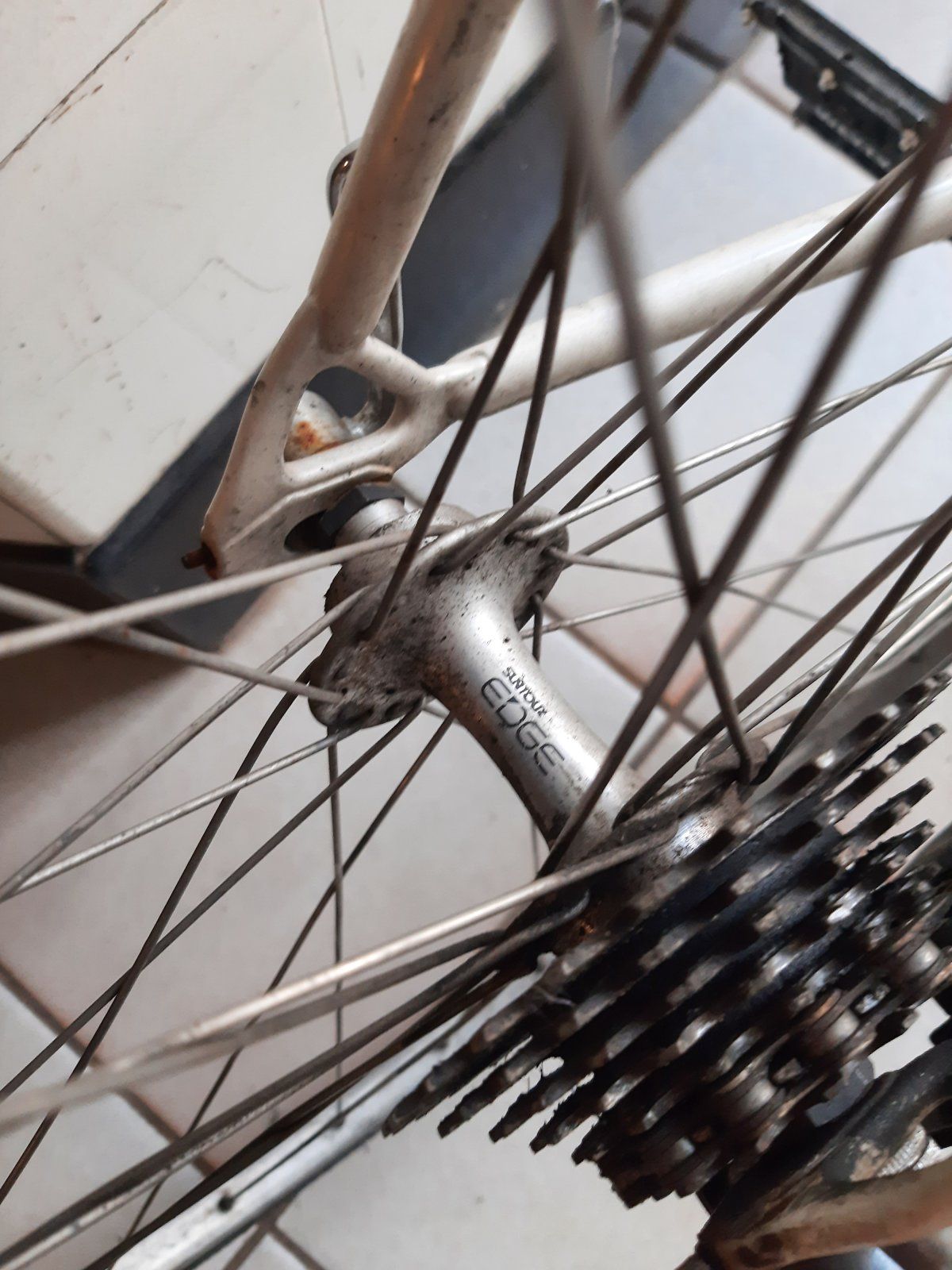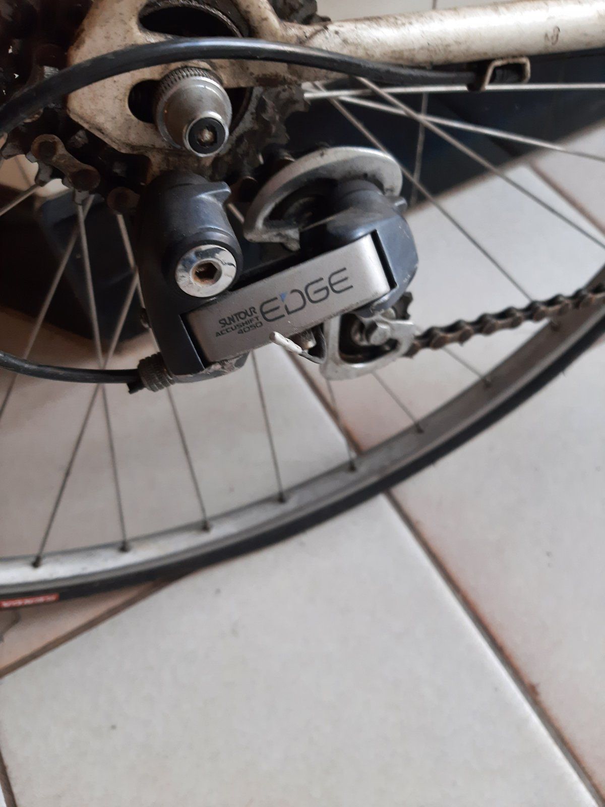 Eine Edge 3 fach liegt hier noch mit 175mm die weg kannSuntour Edge Gruppe. Ohne Kurbel, dafür mit defektem Rahmen. Über die Naben habe ich nichts bei Velo aßen gefunden.