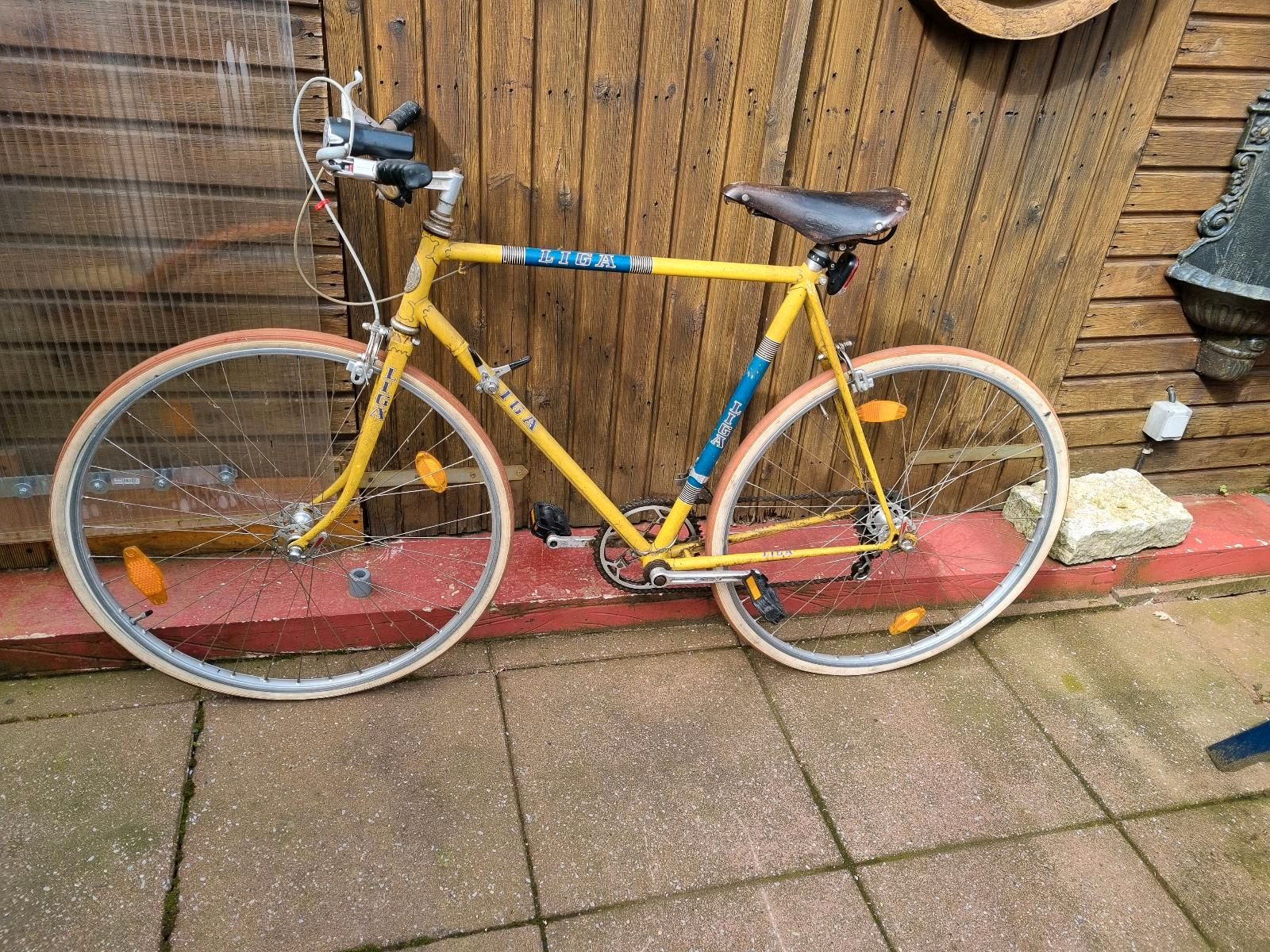 Geil - wer kommt auf die Idee an einen Rahmen aus Reynolds 531 Professional eine Shimano 600 zu schrauben?Ums Eck aus der großen Bucht. Mal was anderesFährt sich so wie es da steht schon klasse!