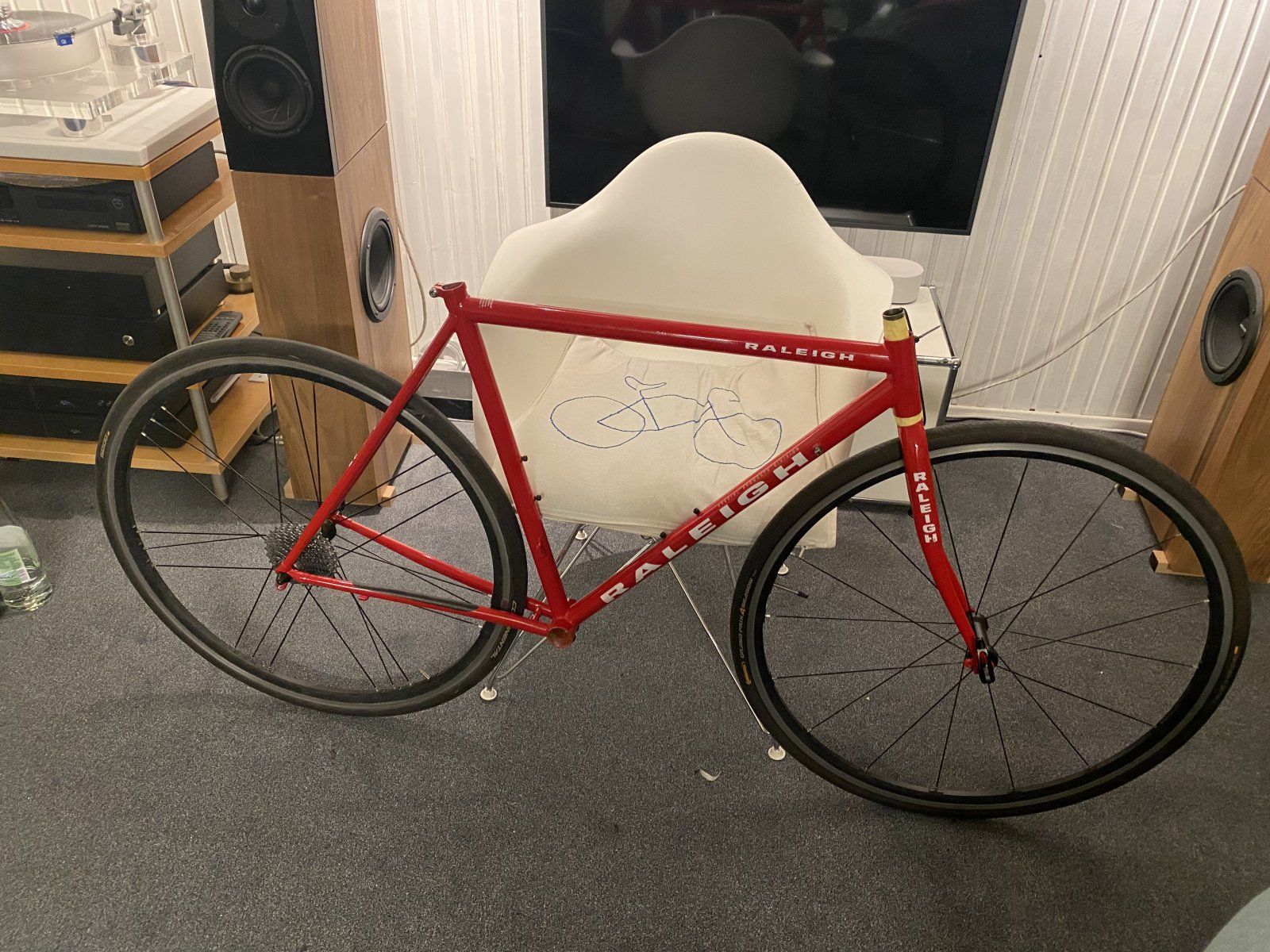 Ich konnte es nicht lassen. Sicher nix Dolles. Soll Reynolds sein. 27,00. Komisch ovalisierte Rohre, S Bend Hinterbau. Mit schwarzer Gruppe vllt ganz schick. Mal gucken …