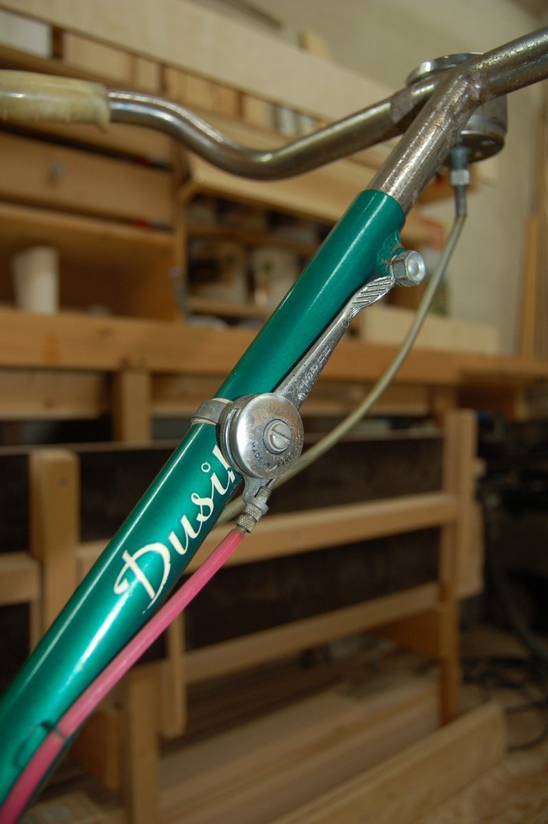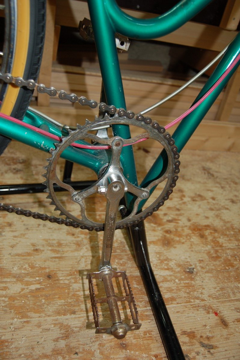 Braucht ein wenig Zuwendung, und dass das Schaltwerk nicht mehr original Huret ist - je nun, das Campa-Teil schaut ja auch recht nett aus. Sattel geht auch ok. Namenlos, aber ordentliches Kernleder.