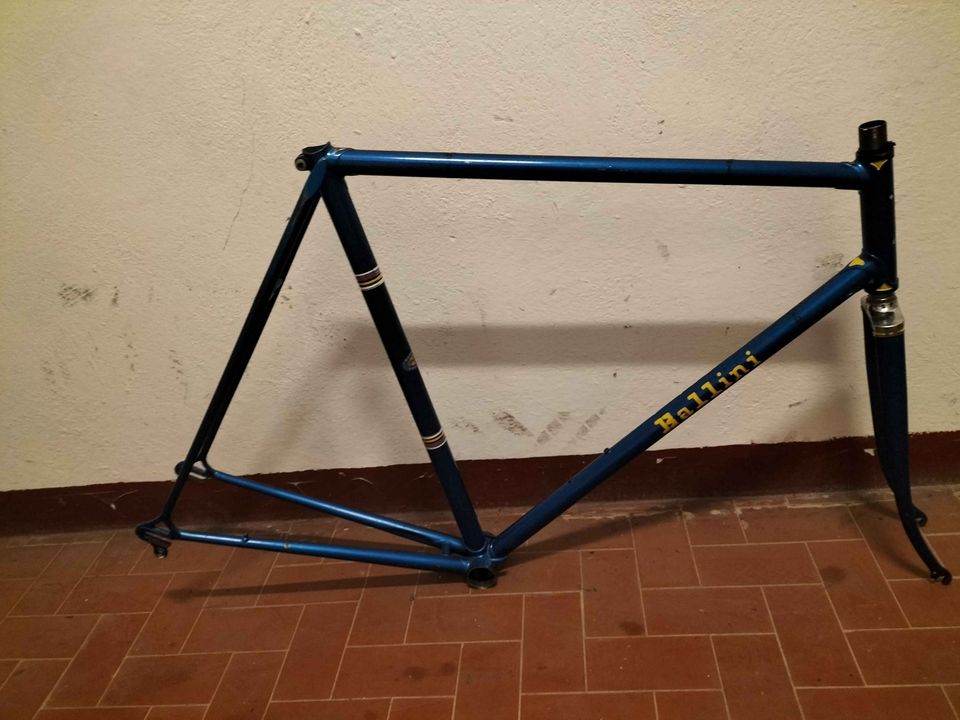 Leider ist Gabel des fanini nicht original, eher einfacherer Qualitaet und aus einer Massenproduktion (wie die Gabelausfallers gipiemmes an die Gabelholme "angefuegt" sind). Gabelkrone ist von unten "krude" verschweißt und wenig "filigran"...