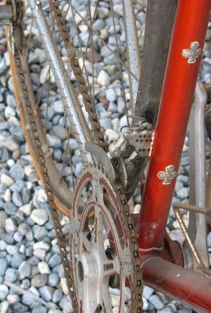 Datt Ballini ist auch sehr schoen und vom Zustand besser. Gabelschaft hat am Ende leider ein Schlag oder Aehnliches abgekriegt und die ersten paar Gewindegaenge sind vermackt. Naja Stellschrauben in den Ausfallenden verostet und krumm. Rechtes Ausfallende auch um 2-3° Grad gequetscht.