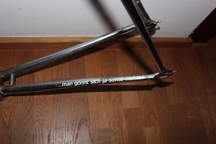 Sollte einen Columbus Rohrsatz haben. Anbei Foto der Reste des Bapperls/Kleber auf meinem