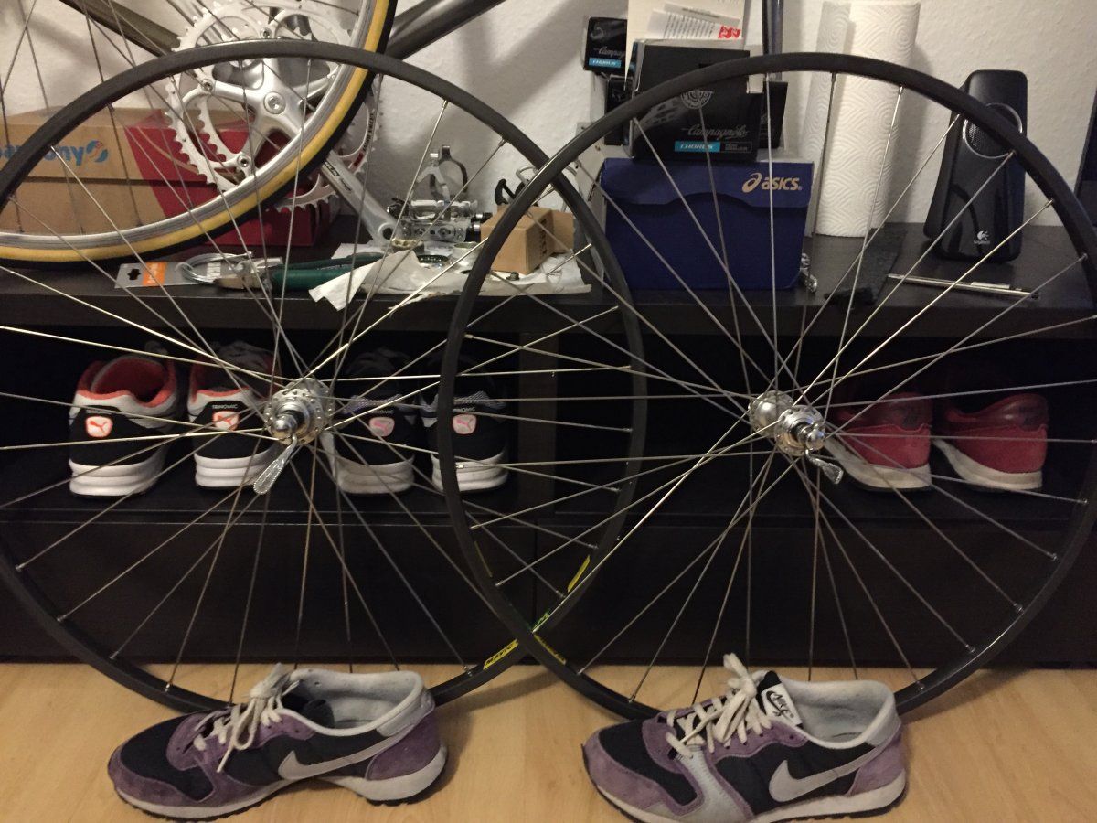 Mein Fang des Tages, eigentlich vor einigen Wochen schon ist aber heute erst angekommen. Ein Neuwertiger Campa Record Laufradsatz auf neuen Mavic MA40, der war eigentlich mal fürs das Rigi bestimmt, welches mich aber noch zu viel Zeit und noch viel mehr Geld gekostet hätte, daher suche ich jetzt ein Projekt mit Campa NR oder SR gerne ohne Laufräder und mit noch viel Arbeit für nicht zu viel Geld in RH 56/57 m-o.