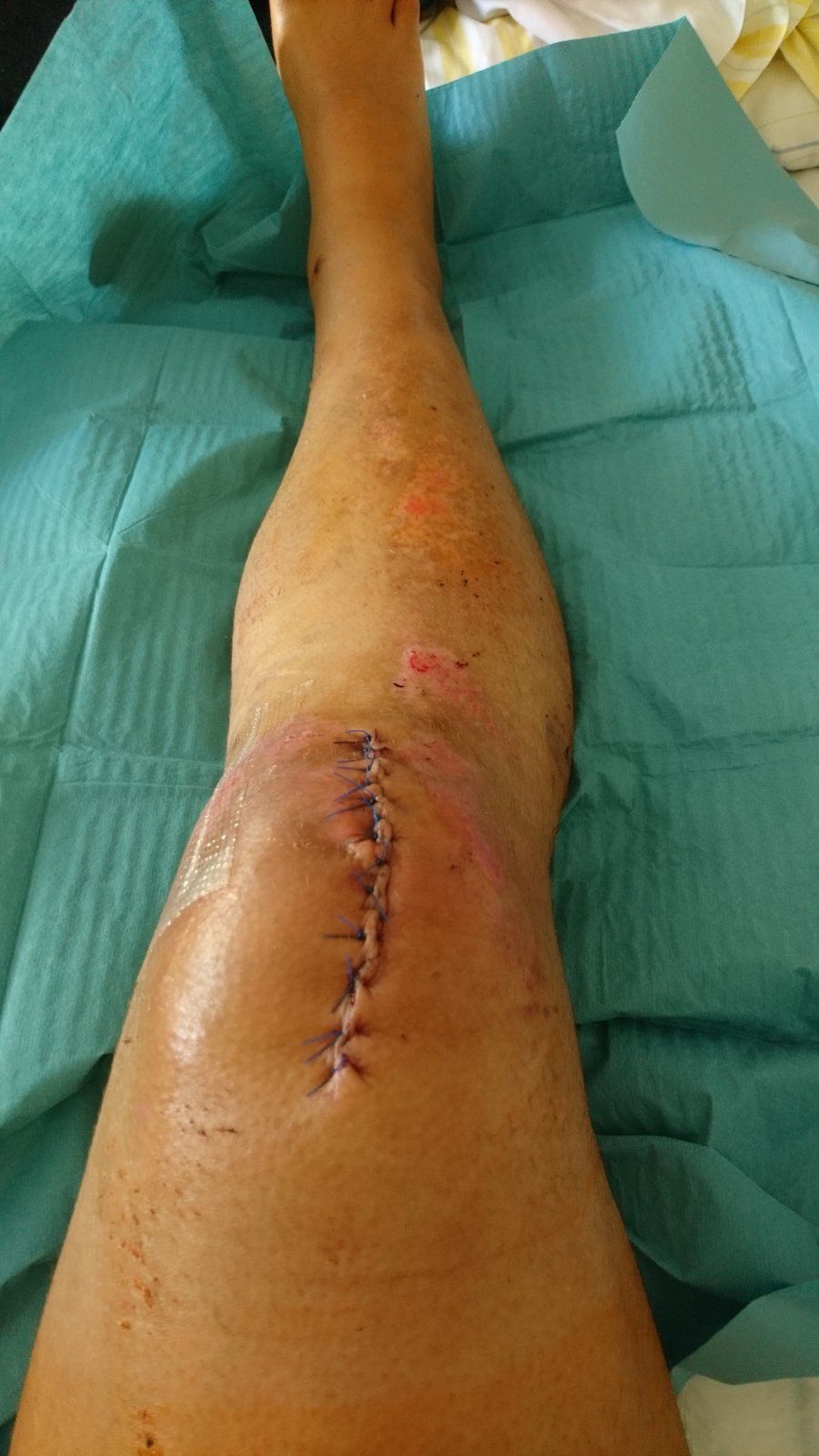 Man, das gilt nicht! Das ist frisch nach der OP! Bei der Naht waren die aber nicht zimperlich. Die hätten die lieber mal mich lassen machen... ich hätte da zwar mindestens 3 Stunden dafür gebraucht und wäre zwischendurch mehrere Male in Ohnmacht gefallen, aber dafür wäre es eine sehr feine präzise Naht mit nem schicken Goldfaden geworden. Und anschließend dann noch mit der feinen Mequiar's Gold Class Lackpolitur aufpoliert...