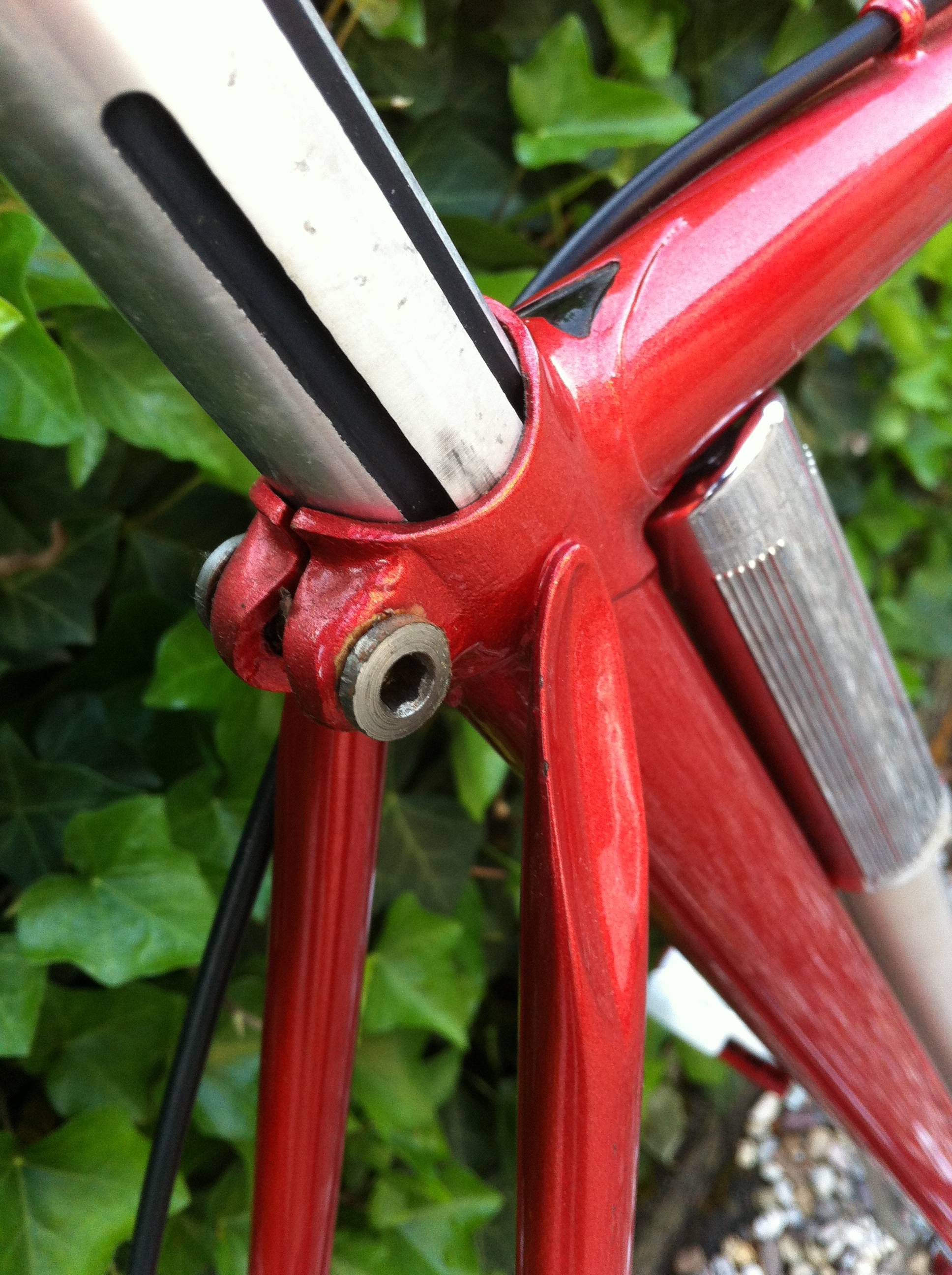 Viel kann man auf den bisherigen Fotos noch nicht sehen, aber wenn es ein Mercier sein sollte, bin ich überzeugt, dass hier Einigkeit besteht, dass die Neulackierung den ursprünglichen Wert des Rades mindestens halbiert hat. :(