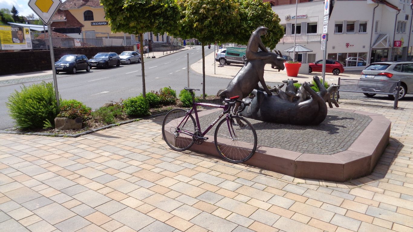 In der Schwalm wird entlang des Radweges immer wieder auf die Gebrüder Grimm verwiesen. Hier zum Beispiel, an der alten Post: