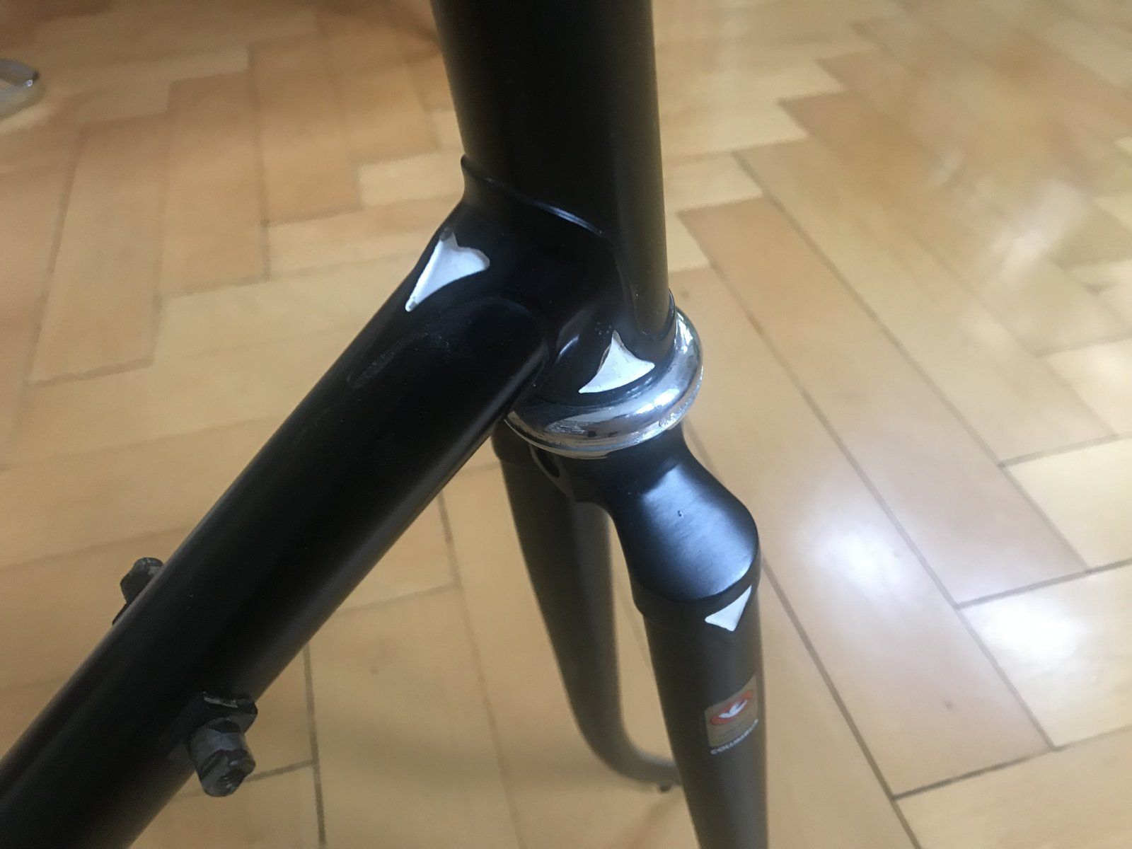 Wegen der Jahrgangs Datierung des Rahmens, der Bremssteg mit dem "Wuerfel", so wurd mir oft gesagt, ist Gipiemme und gab es von den 80igern wohl nuescht, desweiteren sind die Bremskoerper/Bremszangen mittels InnensechskanThuelsenmuttern zu moNtieren, auch eher ab 1978.