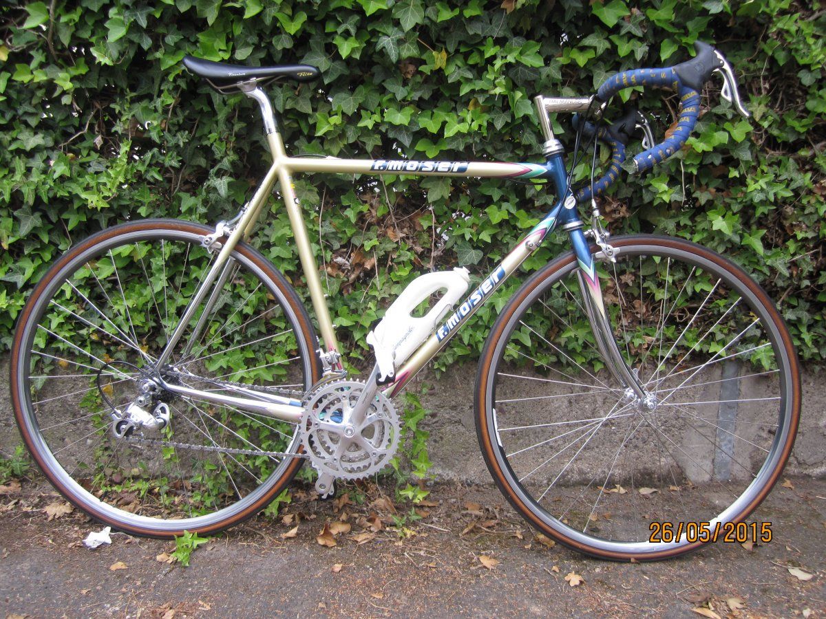 Original ist eine Campagnolo Record Panto Stütze verbaut, die habe ich auch noch an meinem anderen Moser, fand ich aber hier nicht so passend.