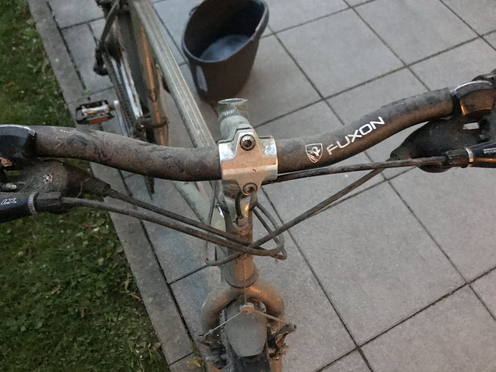Mavic 501-Naben, einen Answer-Vorbau, einen XT-UW, XTR-Schaltgriffe mit Shogun-Schellen und Maguras (jedoch ohne korrekte Brake Booster). Das alles befand sich m. E. überraschenderweise in einem ziemlich guten Zustand, der LRS war top, obwohl das Rad augenscheinlich nie gepflegt wurde. Die