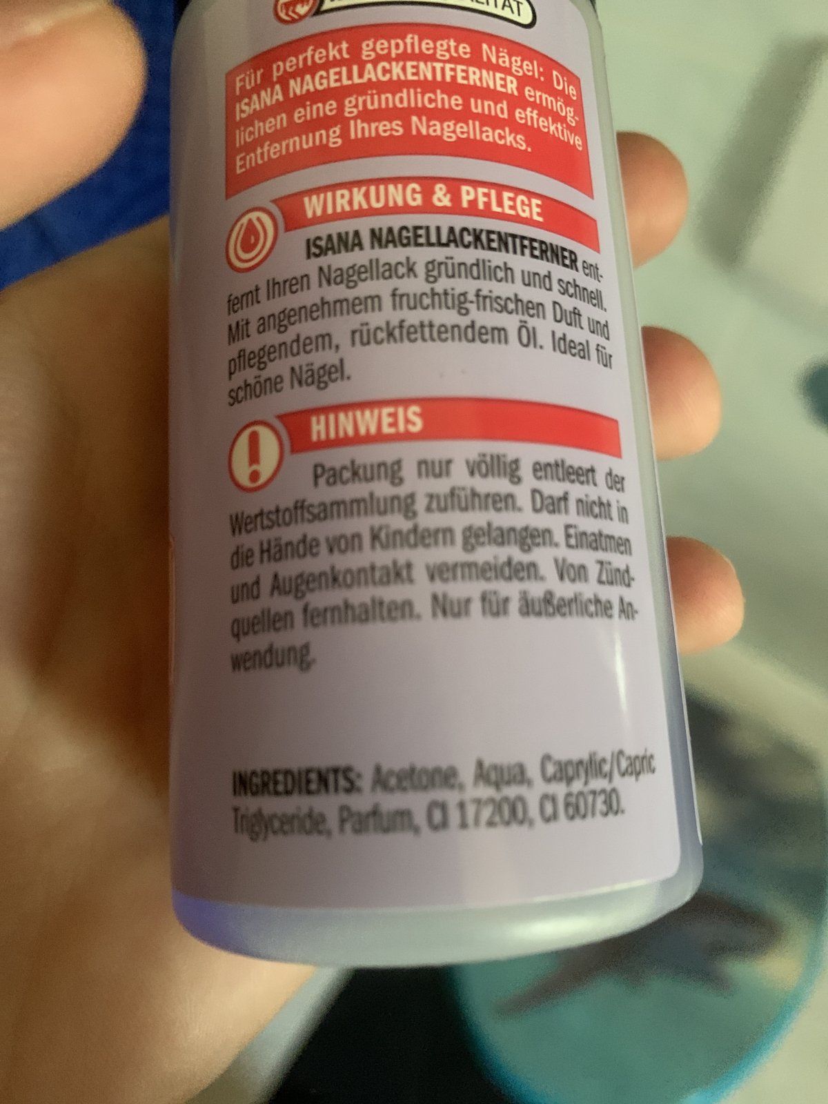 In welcher Form greift er den Lack anNa mußt doch du wissen ob der Nagellack abgegangen ist ist oder nicht. Ich verwende da lieber aus der Apotheke Isopropanol der greift Lacke auf jeden Fall nicht an. Bei Aceton kann das schon mal vorkommen.