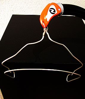 Außerdem braucht man einen dieser Einmal-Drahtkleiderbügel, die man immer beim Klamottenkaufen bekommt. Auf diesem wird hinterher die Stofftasche gespannt, damit die freie Atmung möglich ist.