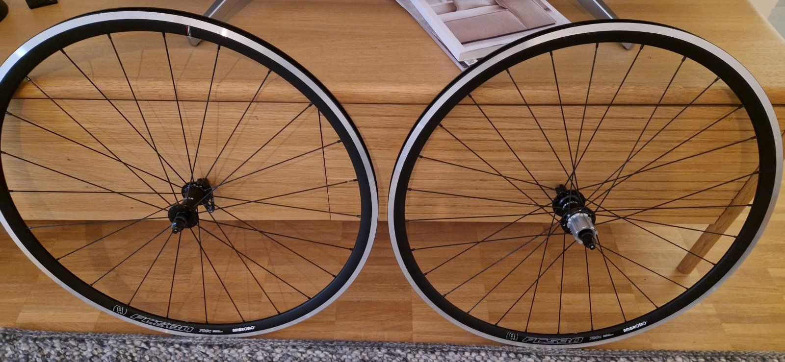 Der Rahmen soll mit italienischen Komponenten kombiniert werden. Ebenfalls über die Kleinanzeigen habe ich preiswert eine unbenutze Centaur 11-fach Gruppe erstanden. Die Laufräder möchte ich (mit wenig Vorerfahrung) selbst bauen. Dazu haben Miche Synthesi Naben, DT Swiss Comp Speichen und Ambrosio FCS30 bereit ihren Weg zu mir gefunden. Sicher kein Leichtbau, aber mein Kompromiss aus Budget und Bastelspaß. Da nur 23mm Reifen passen und ich gern eine helle Flanke haben möchte, fiel meine Wahl auf Vredenstein Fortezza Senso Superiore. Das Cockpit besteht aus ITM-Vorbau von @𝐻𝑒𝓍𝑒𝓇 (Danke!) und passendem Lenker von Ebay. Pedale werden Eggbeater von @Dachau Radler (Danke!). Die Frage des Sattels und der Sattelstütze ist noch offen, vielleicht ein Brooks Cambium in schwarz. Nur welche Sattelstütze?