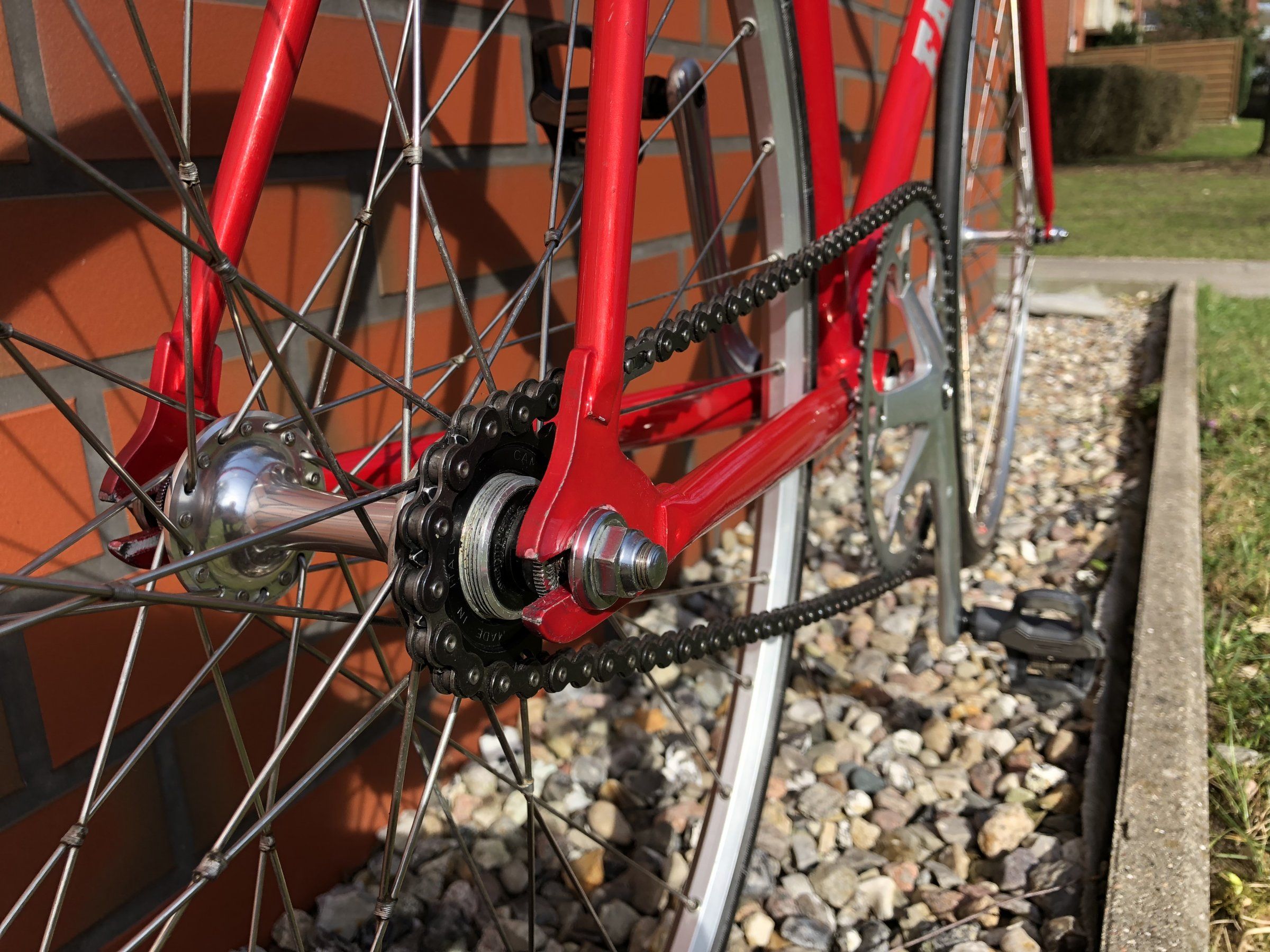 Amtliches Gerät, was ist das für eine RH? Du scheinst ja nicht gerade klein zu sein, vergiß nicht das Ritzel zu kontern bevor du auf der Bahn loslegst.