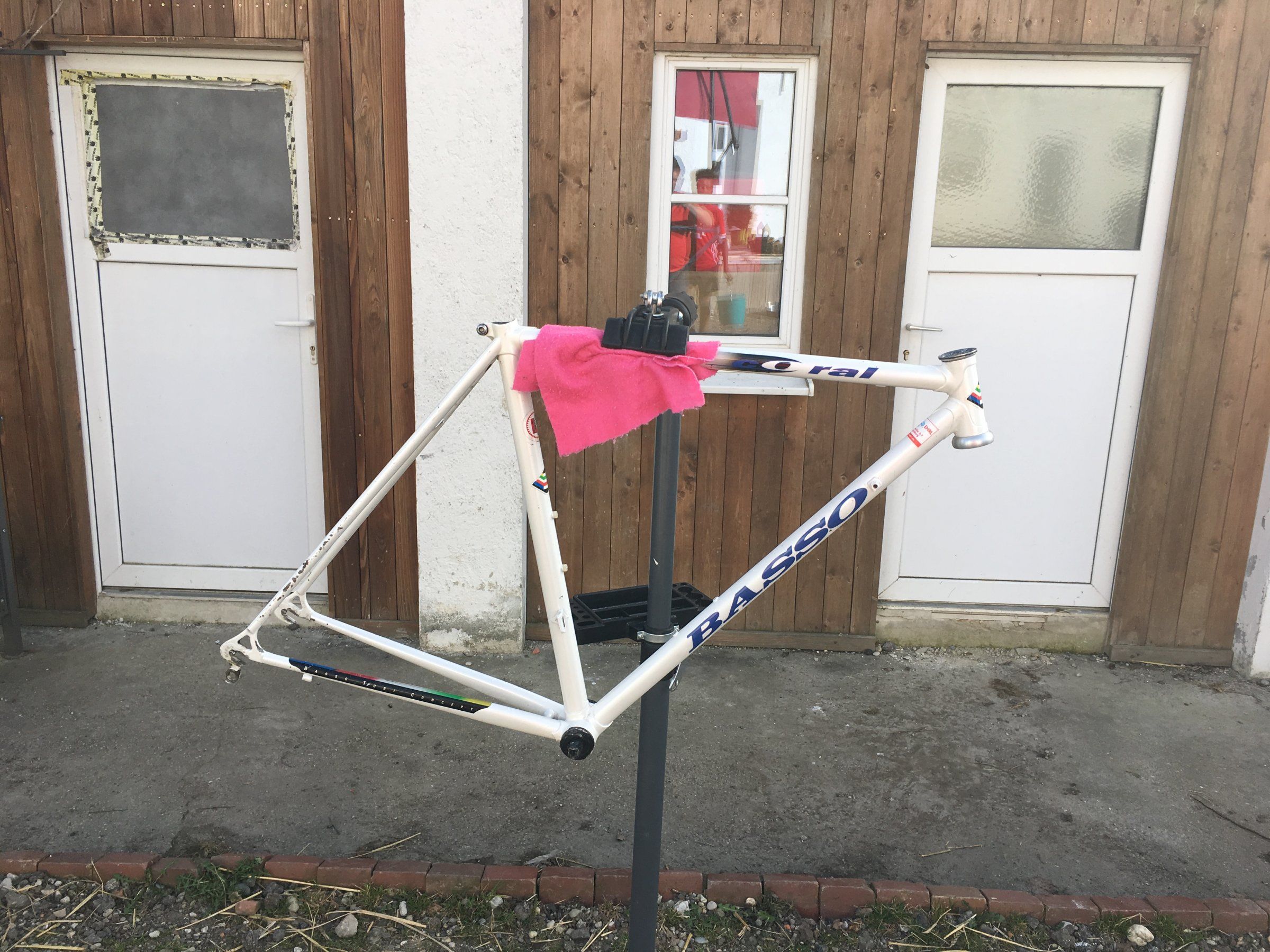 Dann kam die Sattelstütze dran, die Jürgen vom Mitglied rberns gesponsert wurde. Auch sein Lenkerband wird zum Einsatz kommen.