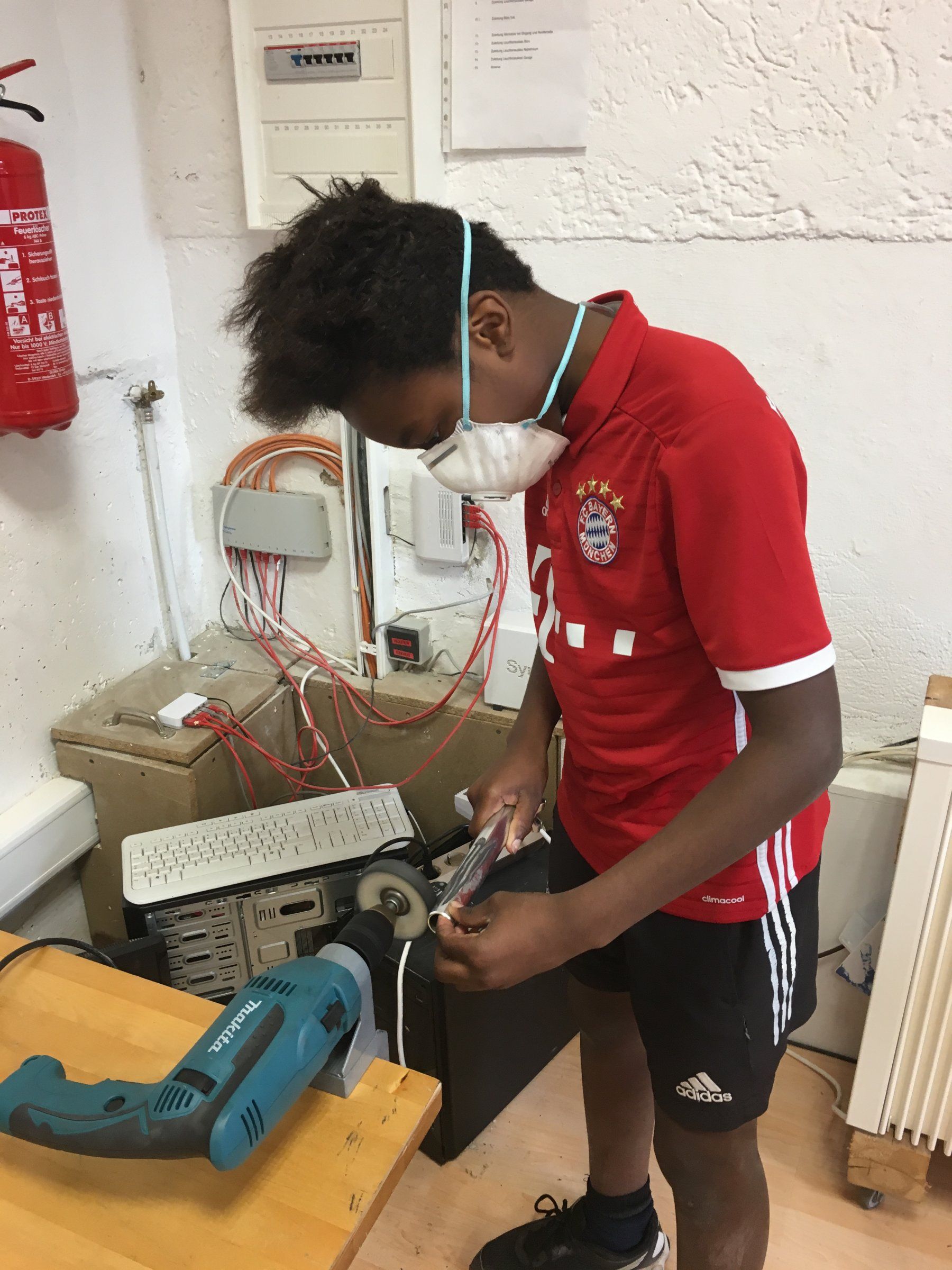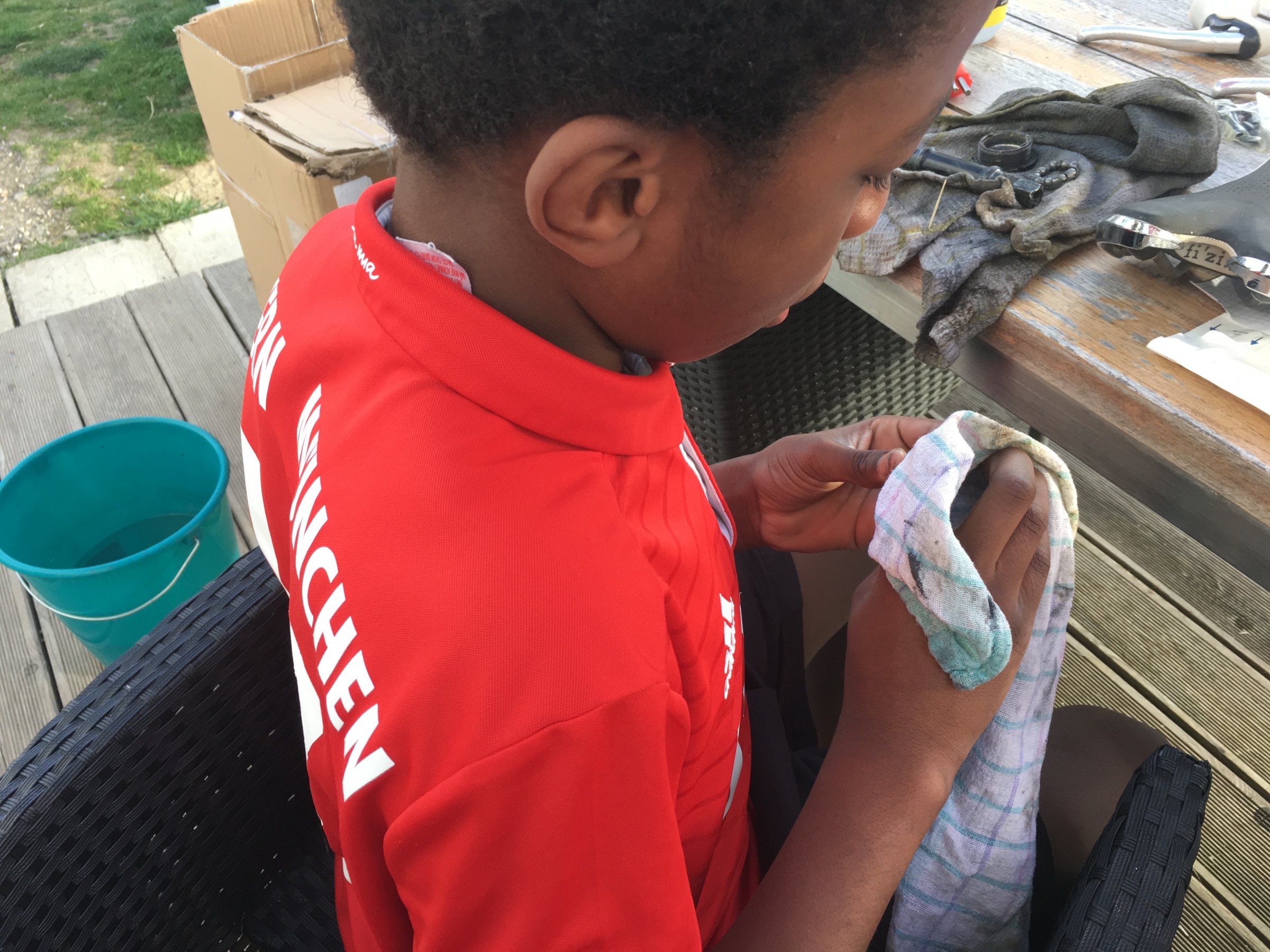 Einer reinigte Schaltungen und Innenlager, einer baute einen Handwagen für unseren Hausmeister zusammen und einige im Wechsel halfen mir beim Porteur.