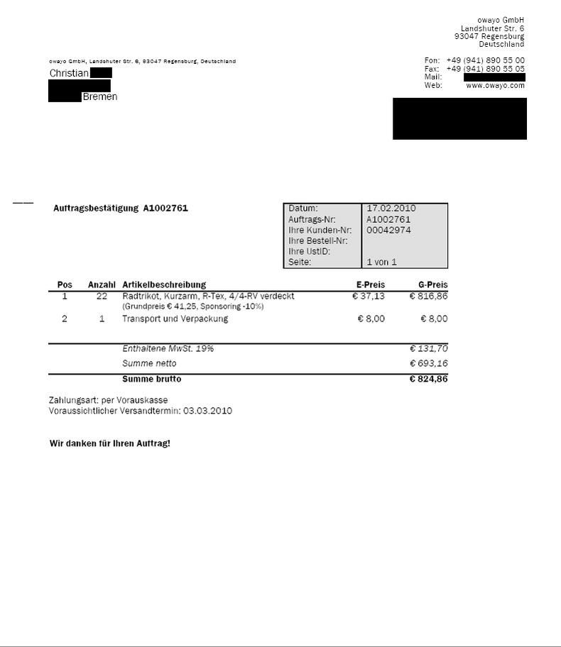Überweisen natürlich erst, wenn ich euch die Daten geschickt habe.