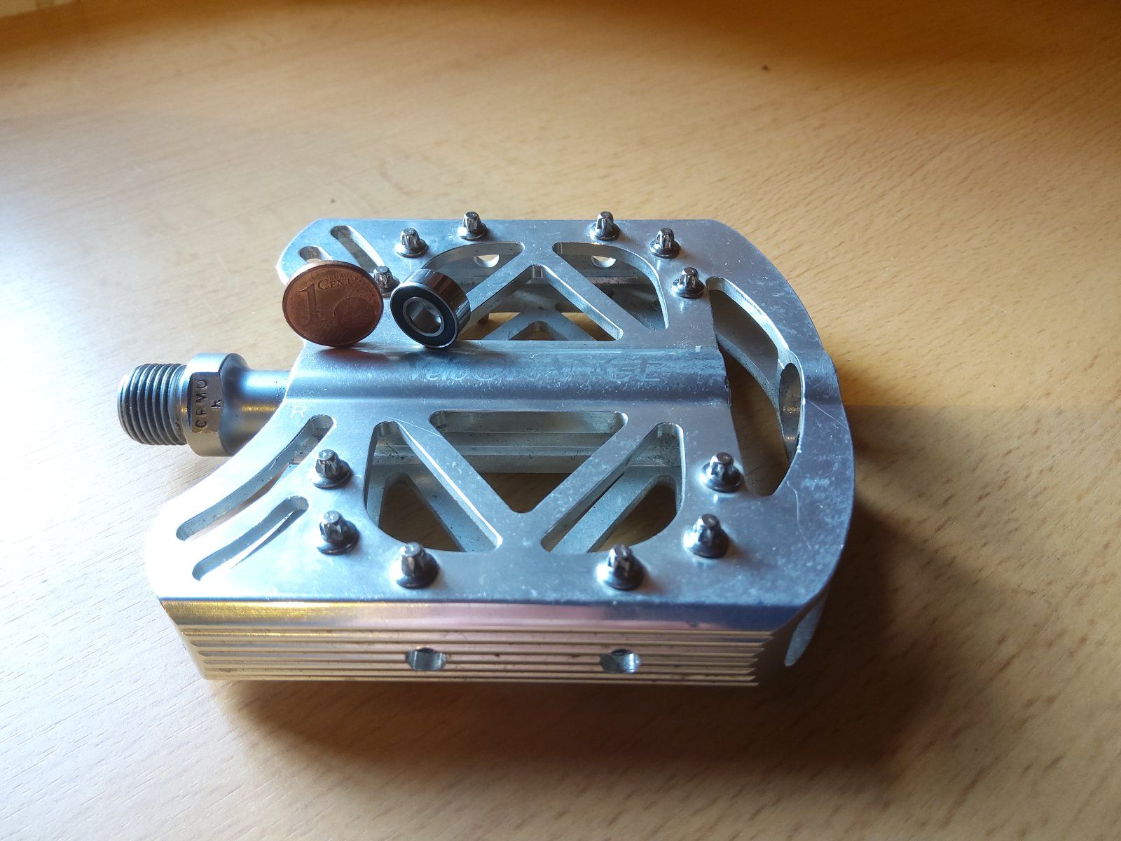 Aber das einzige Plattform Pedal, das es auch in silber poliert gibt (glaube ich wenigstens), von außen abschmierbar, innen Nadellager, außen (immerhin) zwei Minilager. Oder gab. Dank Unterstützung von @Grautvornix konnte ich noch ein Paar aus Dänemark kaufen.