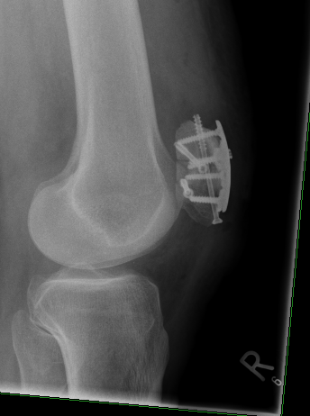 Blöderweise bin ich mit dem rechten Bein irgendwie am Rad hängengeblieben und nicht auf den Asphalt, sondern das Rad gefallen. Konsequenz: offener Trümmerbruch in der Kniescheibe. Aua!