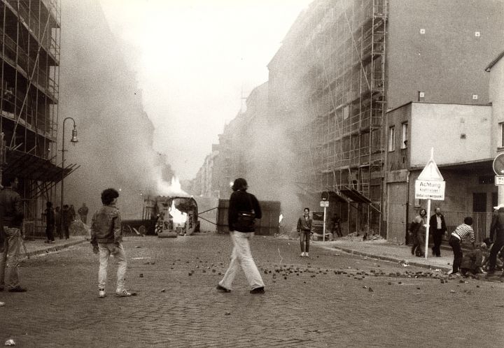 in unsrer besetzten Hütte... ihr erkennt den Akt auf der Hofbühne? und ganz hinten... die Mutter meiner Kinder... Monate bevor ich sie kennenlernte.
