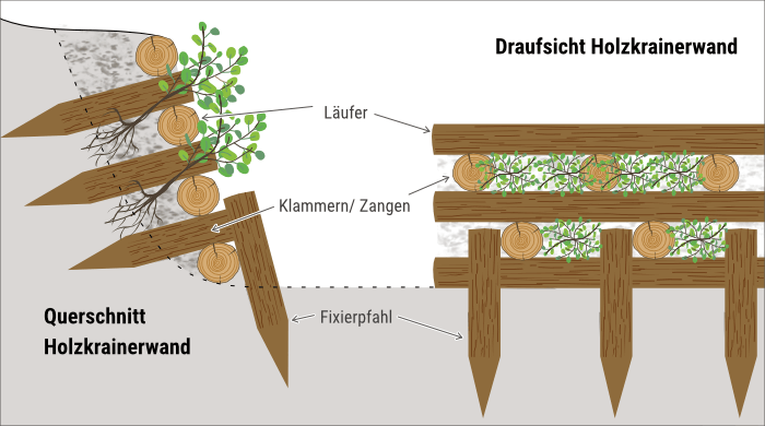 Oder als alter Ingenieur eine weitere ingenieuersbiologische Bauweise mit Gabionen. Aber da braucht man dann schon bald schweres Gerät.