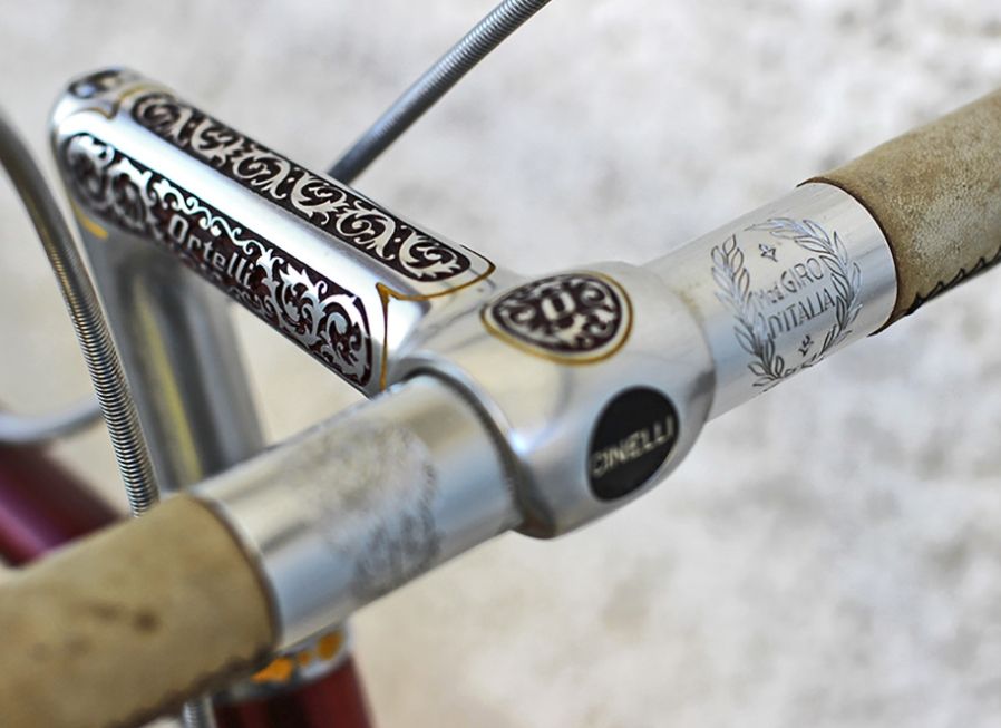 Das ist wirklich der schönste Vorbau. Cinelli 1 R sowieso elegant und dann diese aberwitzig schöne Gravur..