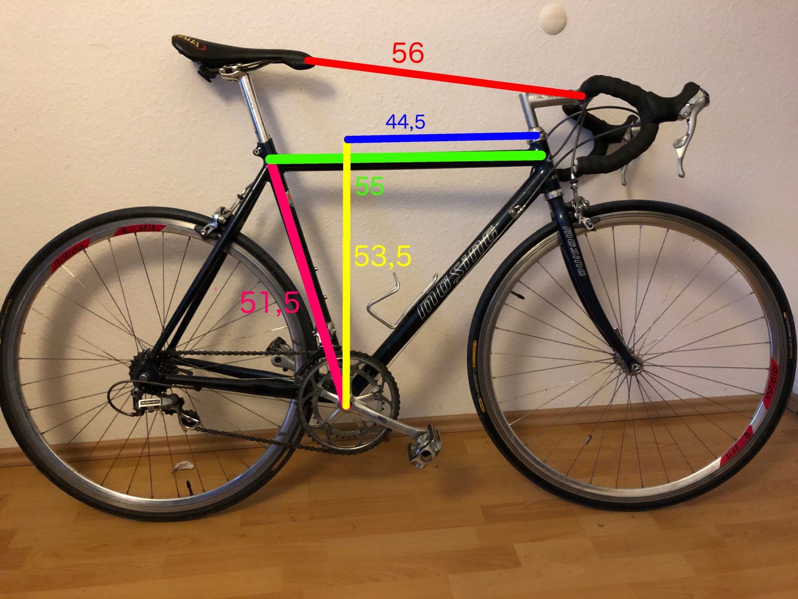 Ist schon eine komische Geo - 55er OR bei einem 52er Rahmen. Aber mit so altem Geröhr kenne ich mich nicht wirklich aus.Wieso, wenn der Radelfix da 51,5 misst?!