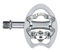 Zu 2: Einseitiges Klicken macht die Pedale leichter und ist beim RR völlig ausreichend, da wir in der Regel einmal beim Losfahren einklicken und erst am Ende unserer Tour wieder ausklicken. Beim MTB dagegen kommt es geländebedingt zu häufigem Ein- und Ausklicken. Da ist es eine erhebliche Erleichterung, wenn wir in jeder Pedalstellung sofort wieder einklicken können. Erleichtert wird das "blinde" Einklicken zusätzlich durch die geringe Größe und die nahezu "runde" Bauart - das ist der tiefere Sinn dahinter, dass sie so klein sind.