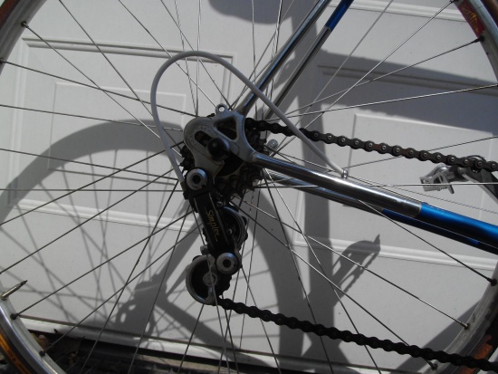 Ich habs mal weitgehend zusammengesteckt - leider hat der Umwerfer endgültig den Geist aufgegeben, da montiere ich pragmatischer Weise erstmal nen anderen Simplex dran... jetzt sind mir schon 2der Schalthebel-Dinger durch die lappen gegangen, aber es besteht zumindest Hoffnung, da irgendwann mal Ersatz zu finden. Mit dem Schaltwerk stimmt irgendwas noch nicht, damit muss ich mich nochmal mal in Ruhe befassen... Der hier gezeigen LRS ist nicht der Originale, da derzeit keine Schlauchreifen aufgezogen sind, wollt ich damit erstmal warten...