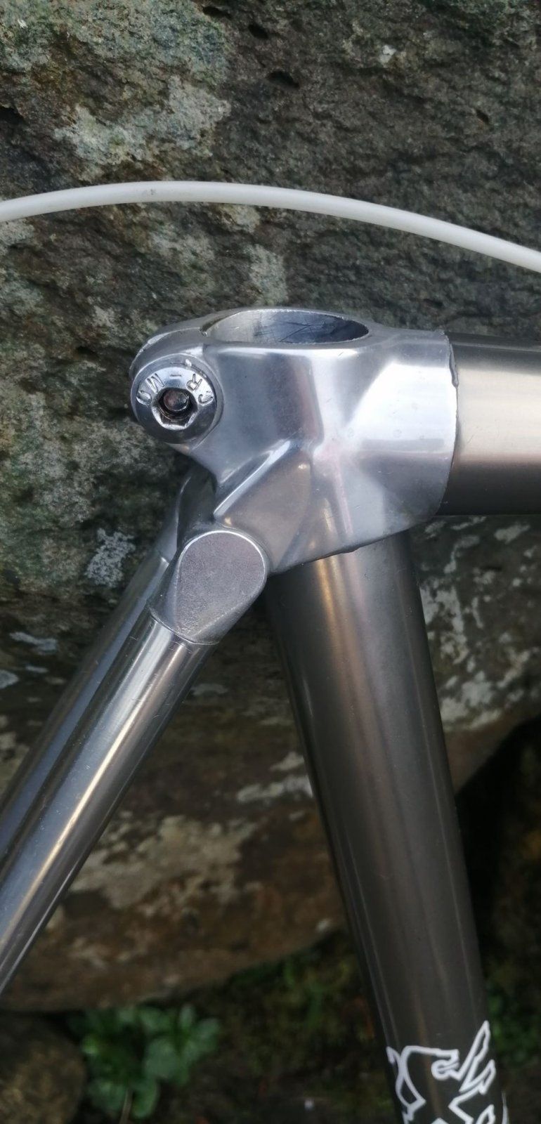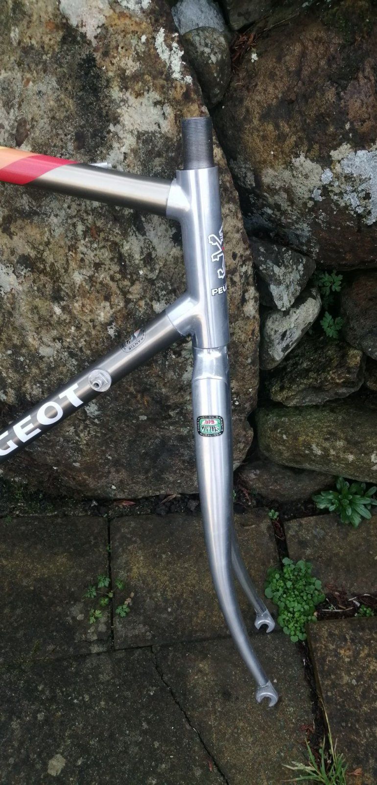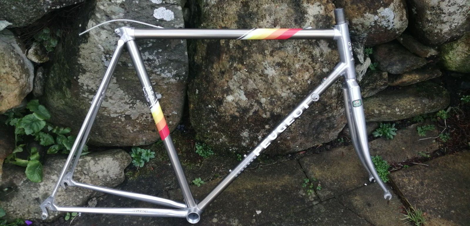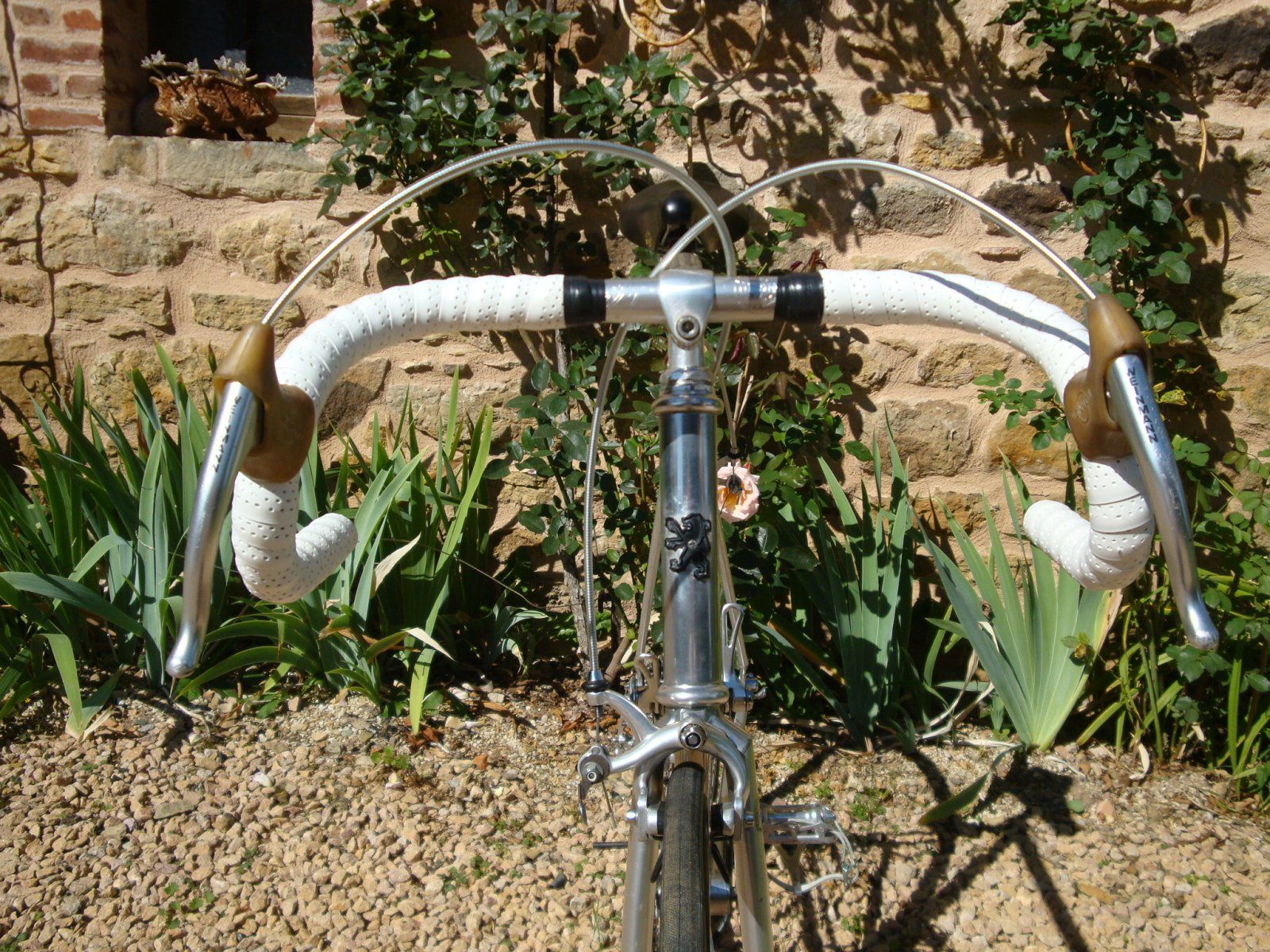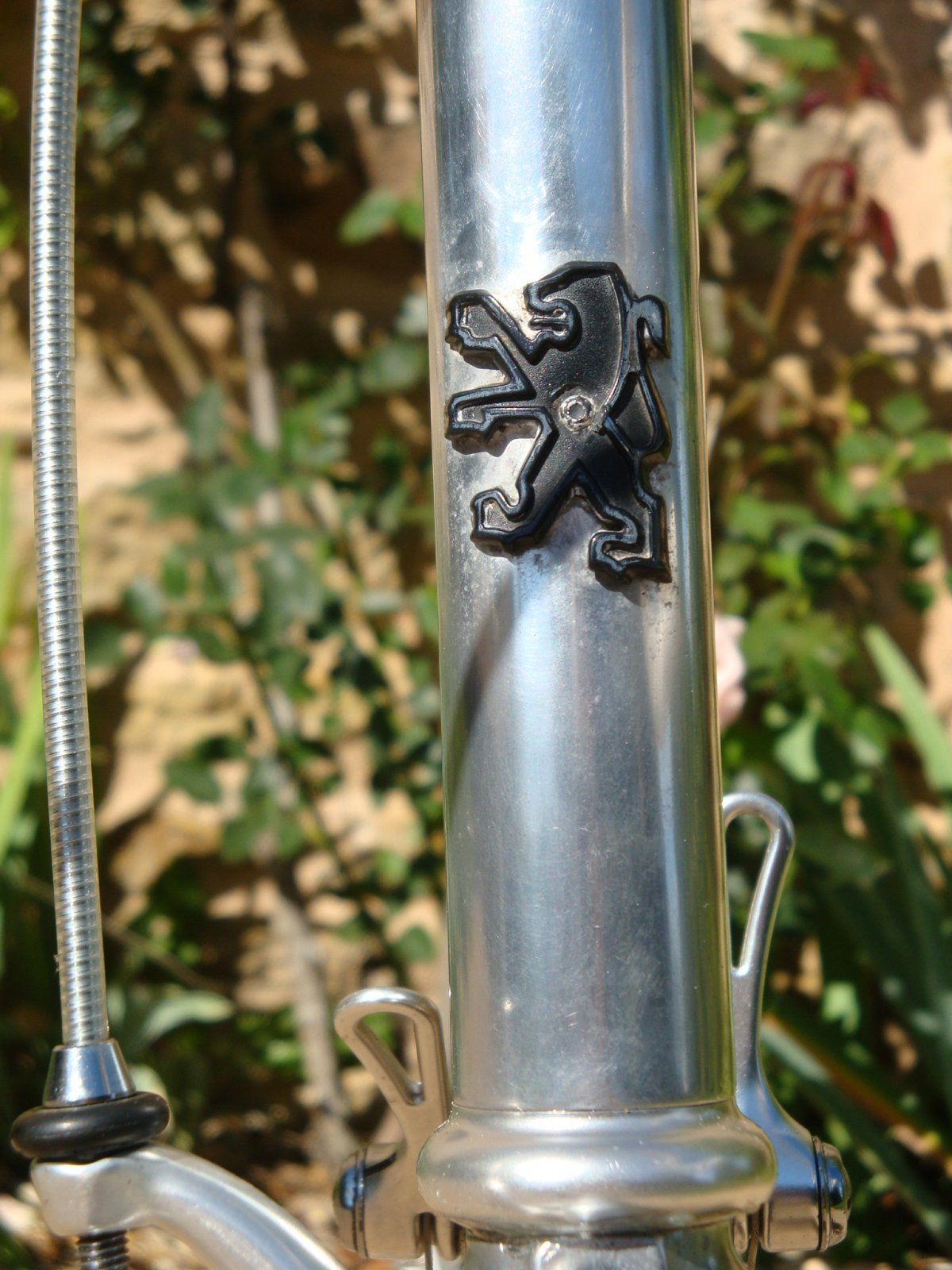 MICHELIN mit dem aufgedruckten bleu-blanc-rouge Peugeot-Löwen und dem dem analogen Streifen auf dem Oberrohr unterwegs.