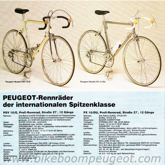 MICHELIN parallel das PY-10FC, vereinzelt noch das PX-10DU (...vielleicht traute man anfangs den Carbonrohren nicht?!) und ein stählernes Pro-10 in diesem Dekor gefahren wurde. Im Laufe der Saison hat sich das PY-10FC wohl bei den Fahrern durchgesetzt und wurde zum Teamrad bis 1987 das Peugeot Werksteam in Team Z-Peugeot umbenannt wurde - das PX-10DU wurde aber ab 1983 kommerziell in diesem Dekor angeboten.