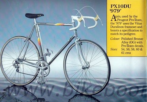 Du hast recht das die ersten Vitus 979 an Peugeot in einem dunkleren Copper-gold ausgeliefert wurden die einfach dem Dekor der Pro-10 bis einschl. 1981 unter Peugeot-Esso-