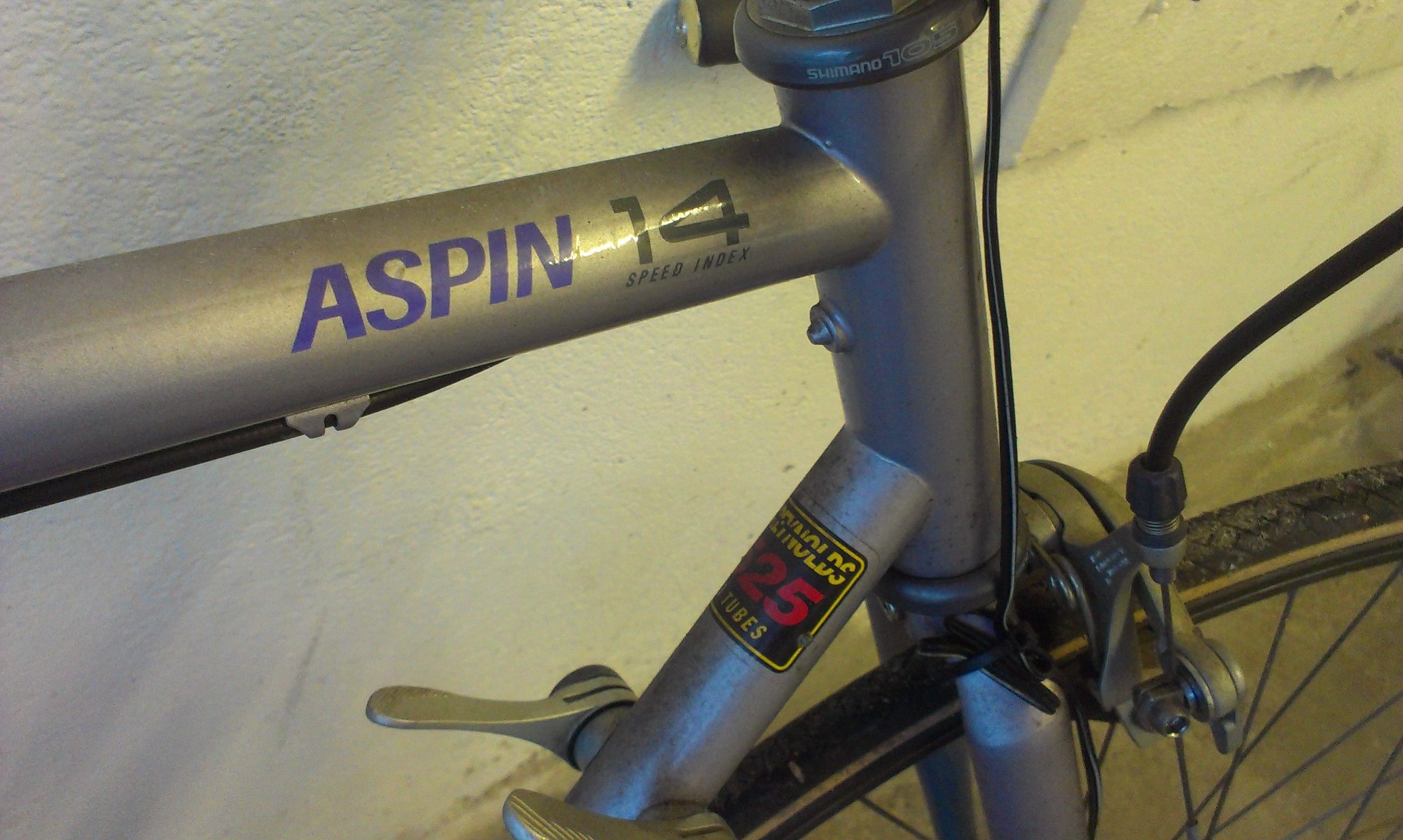 Bis jetzt kann ich euch sagen, dass es sich um ein Peugot Aspin 14 handelt und Bremsen und Pedale sind Shimano 105. Ich denke da ist alles noch Original.