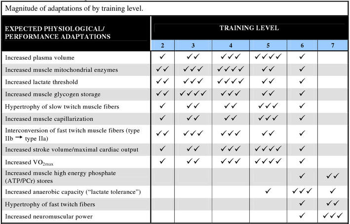 Es ist ein allgemeines Missverständnis, das unterschiedliche Trainingsformen (z.B. GA1, EB usw.) unterschiedliche Eigenschaften (z.B. Grundlage, anaerobe Schwelle, VO2max) trainieren. Es passiert nichts besonderes unterhalb, an oder oberhalb der anaeroben Schwelle. Vielleicht mal abgesehen von der Laktattoleranz. Siehe hierzu beigelegte Tabelle von A. Coggan.