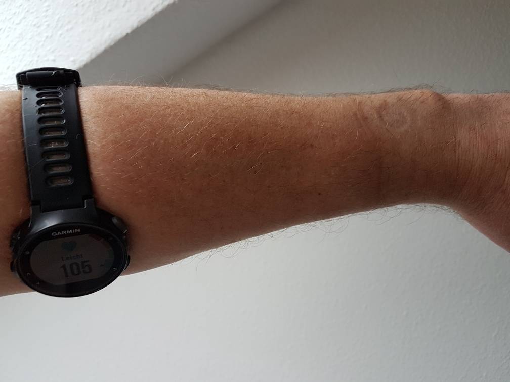 letztens habe ich mit einer verlängerung des armgurts des forerunners mal eine art belastungstest beim schwimmen vorgenommen. siehe fotos unten