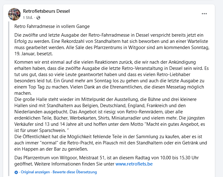 Ich konnte drei Häkchen setzen, einen 1958 gemarkten Bahnvorbau und -lenker, der mir als letztes Teil noch für meine Paupitzbahnmaschine gefehlt hatte, endlich mal gut passende Radschuhe und im Nachgang noch ein paar Scheeren Holzkernfelgen, die an meinen 1951er Adler kommen.