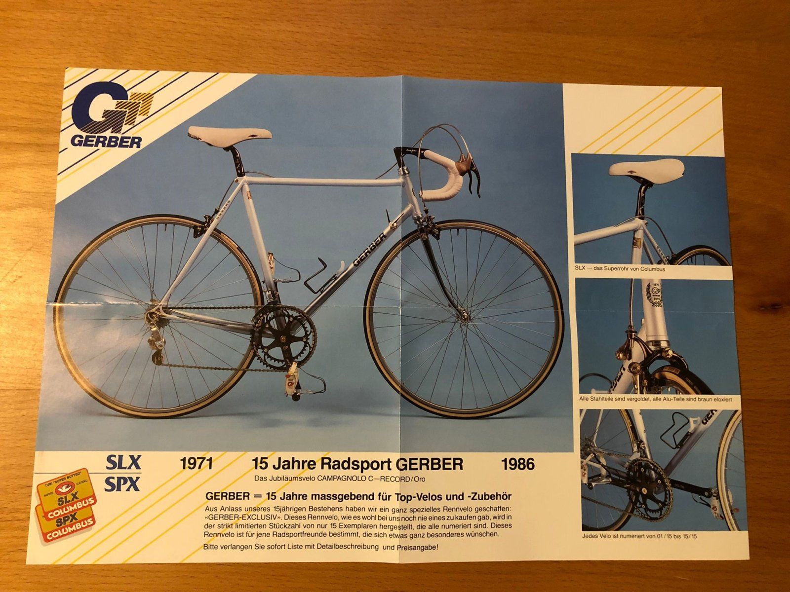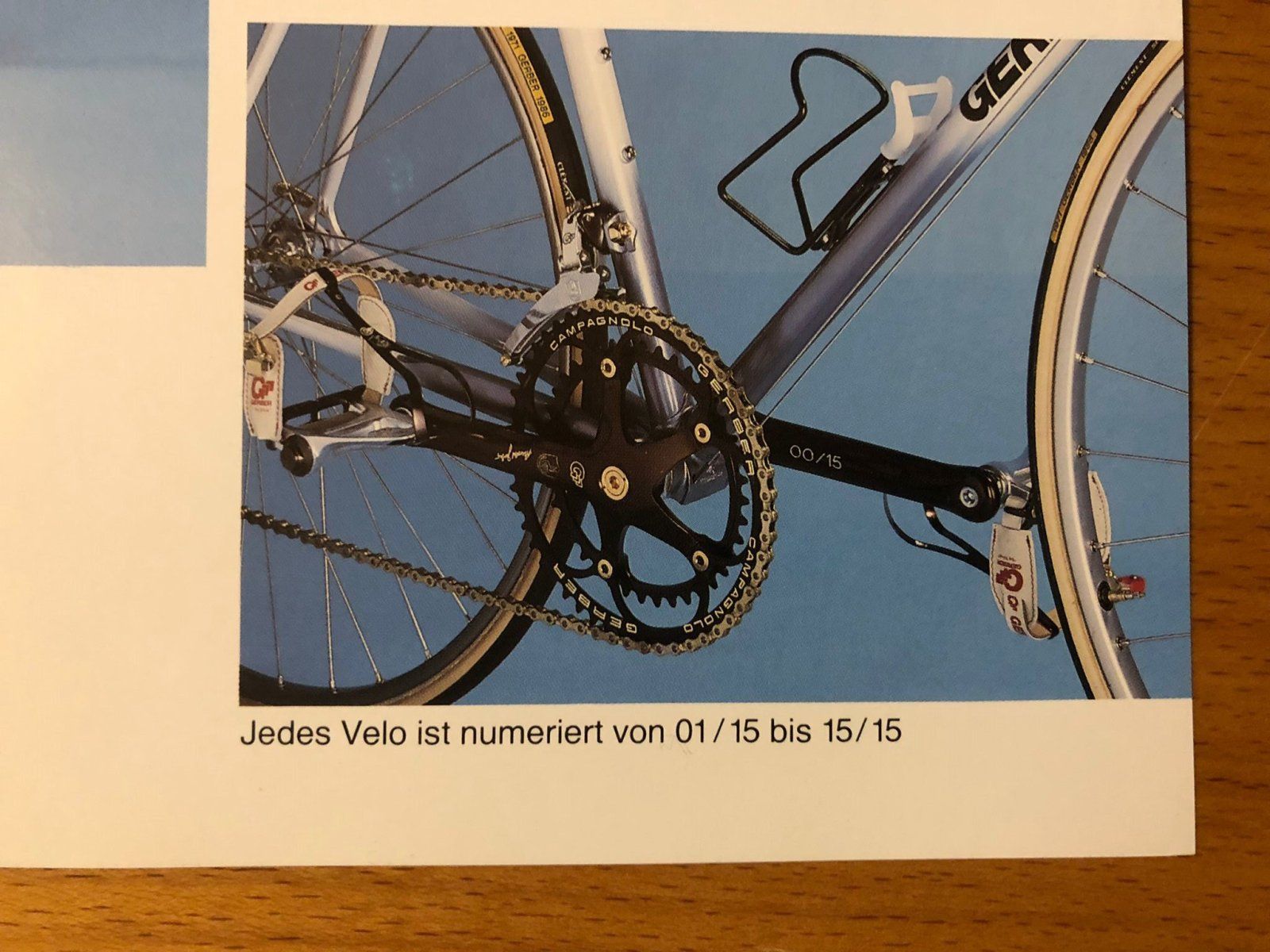 Dieser Jubiläums Rahmen wurde für Gerber 20 mal bei Patteli in Bologna gefertigt, 15 Rahmen wurden mit der von Campagnolo speziel für Gerber gefertigten Gruppen aufgebaut.