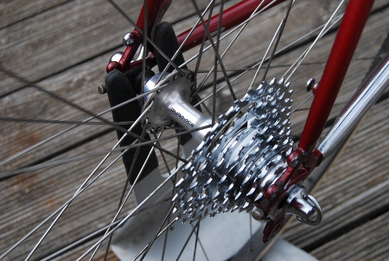 Hatte noch Laufräder mit Dura Ace 8-fach Naben und MA40 Felgen.