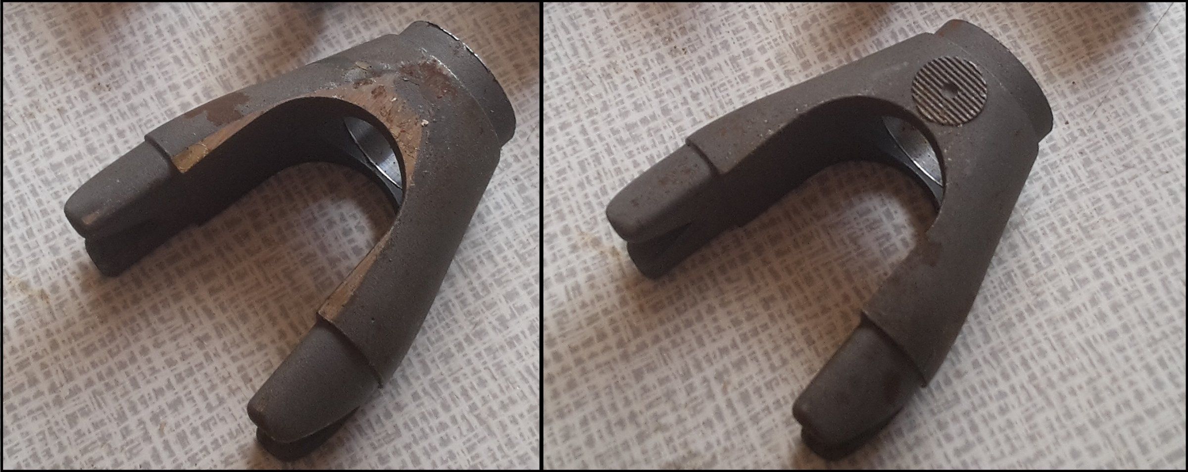 Denke die rundung wurde weggefeilt und ein gewinde für die zweite Schraube oben geschnitten damit er sich nicht dreht.