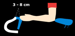 Höhe ist kein Problem, bei vertikal stehender Kurbel hat das Knie ungefähr einen 140°-Winkel. Allerdings müsste ich wohl noch etwas weiter zurück - das Lot von der Kniescheibe liegt bei horizontal stehender Kurbel vor dem Pedalmittelpunkt.