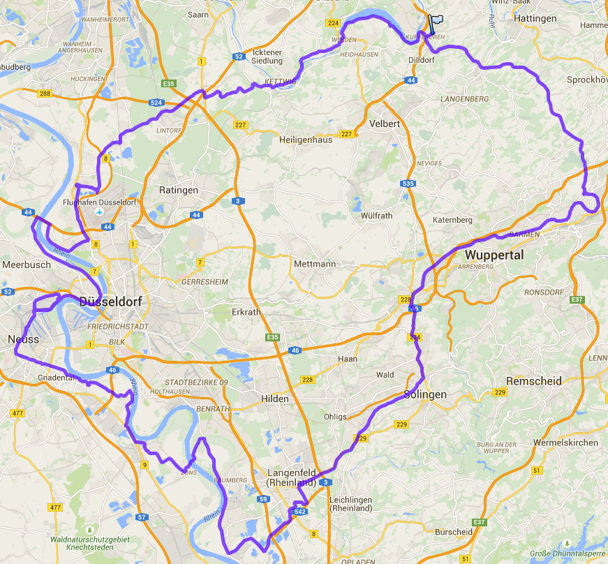 Was ist denn die Alternative? Nördlich der Ruhr geht ganz gut. Ansonsten oben rum. Also Chinese hoch und dann rechts Richtung Velbert. Aber da ist der Verkehr so unentspannt. Sonst noch Möglichkeiten?