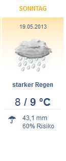 Nur um das mal festzuhalten: Wonnemonat hatten wir ja letztens schon zwei Tage, das reicht! Falls jemand das verpasst hat, bedauerlich - ist aber jetzt vorbei: Nun haben wir Sommer. Den von der nassen Sorte. So wie die letzten beiden Jahre auch. Also wartet nicht drauf, dass sich beim Wetter was ändert.