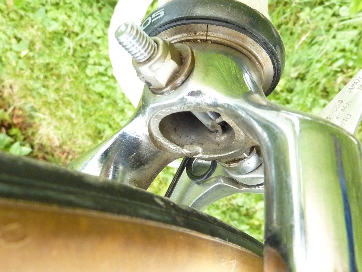 Zwar das sieht das klar wie ein ab Werk gespaltener Gabelkonus (die ich an Shimano-Steuersätzen nie gesehen habe) aus, aber das Prinzip funktioniert mit Cartridge o.ä., nicht mit Kugelringen, die direkt auf diesem Konus laufen. Der Steuersatz sieht aus wie ein HP-1055, der hatte Kugelringe.