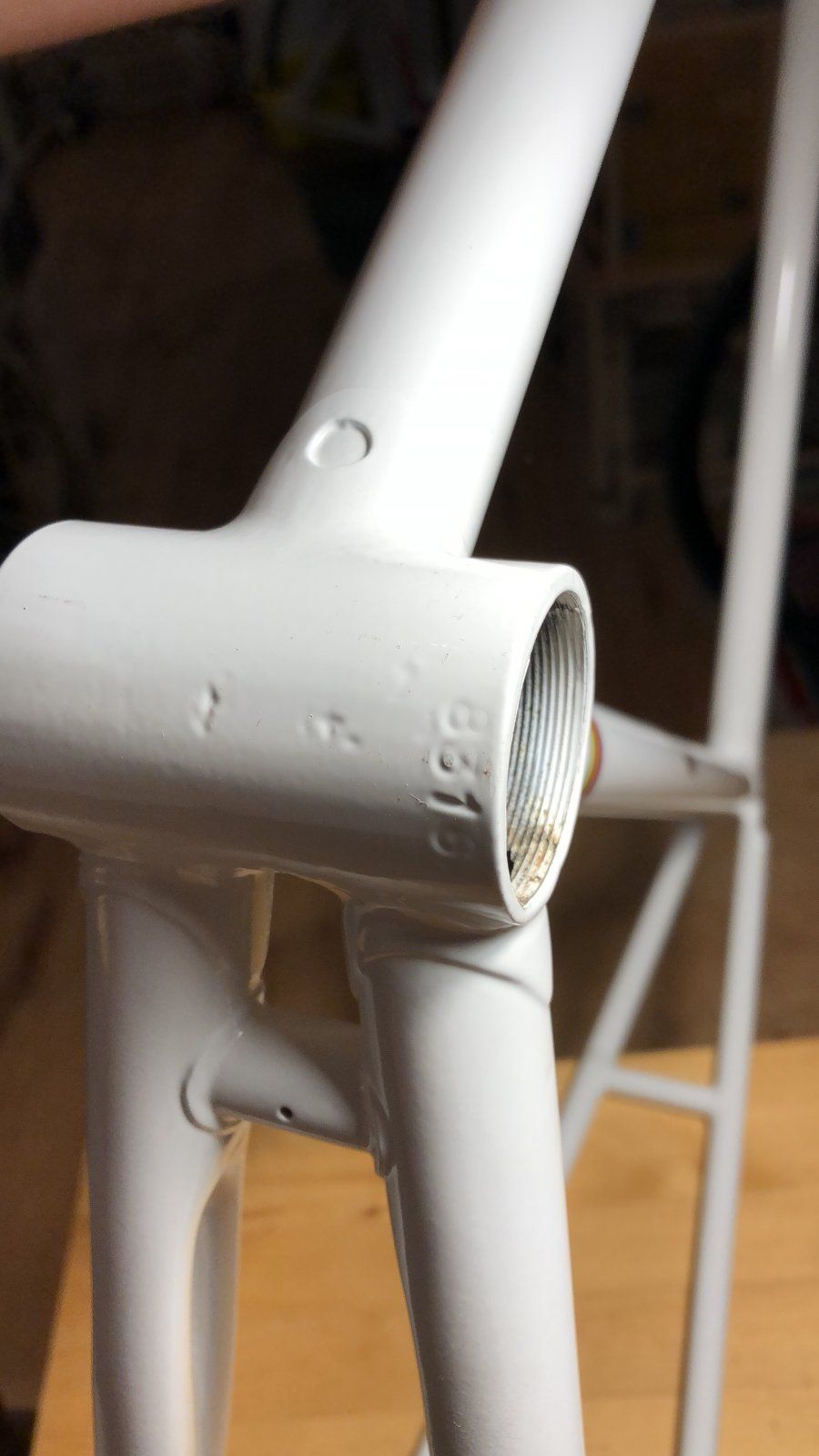 Der Vorbesitzer erklärte mir, dass er diesen Rahmen als Komplettrad von seinem Vater 1970 in gebrauchtem Zustand bekommen hatte. Der hatte es einem Profi aus Frankfurt am Main abgekauft. Auf diesem Rad ist der gute Mann dann wohl 1971 Hessischer Jugendmeister auf der Bahn geworden. Wenn man so will, ein Rahmen mit Rennhistorie! Danach wurde er noch viele Runden und in Rennen gefahren, bis er ca. 1976 in der Garage verschwand.