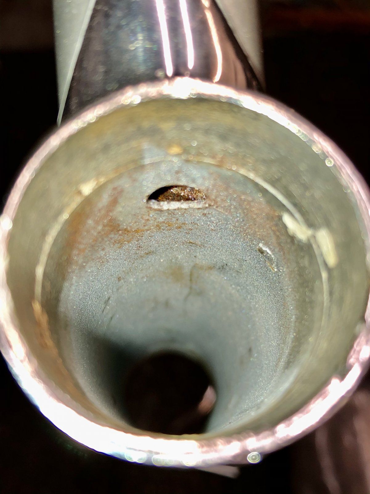 Bei der Inspektion fiel mir leider auf, dass das gute Stück eine Durchrostung in der Kettenstrebe hat.