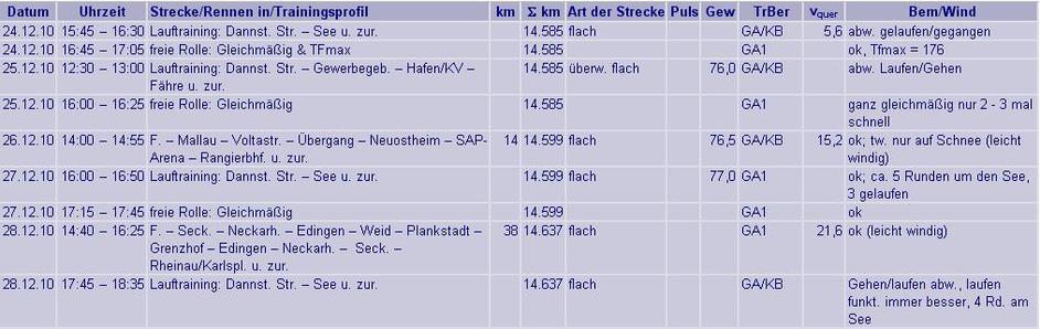 Nur für den Fall, daß Euch sowas motiviert: Mein Trainingstagebuch von Heiligabend bis heute (s. Anhang).Ich warm Freitag auch unterwegs....im Spinningrad aufm Keller. Morgen gehts wieder im warmen Radeln. Ist mir einfach zu glatt draußen nachdem ich gestern morgen mitm Auto schon meine Rutschpartie erlebt habe.