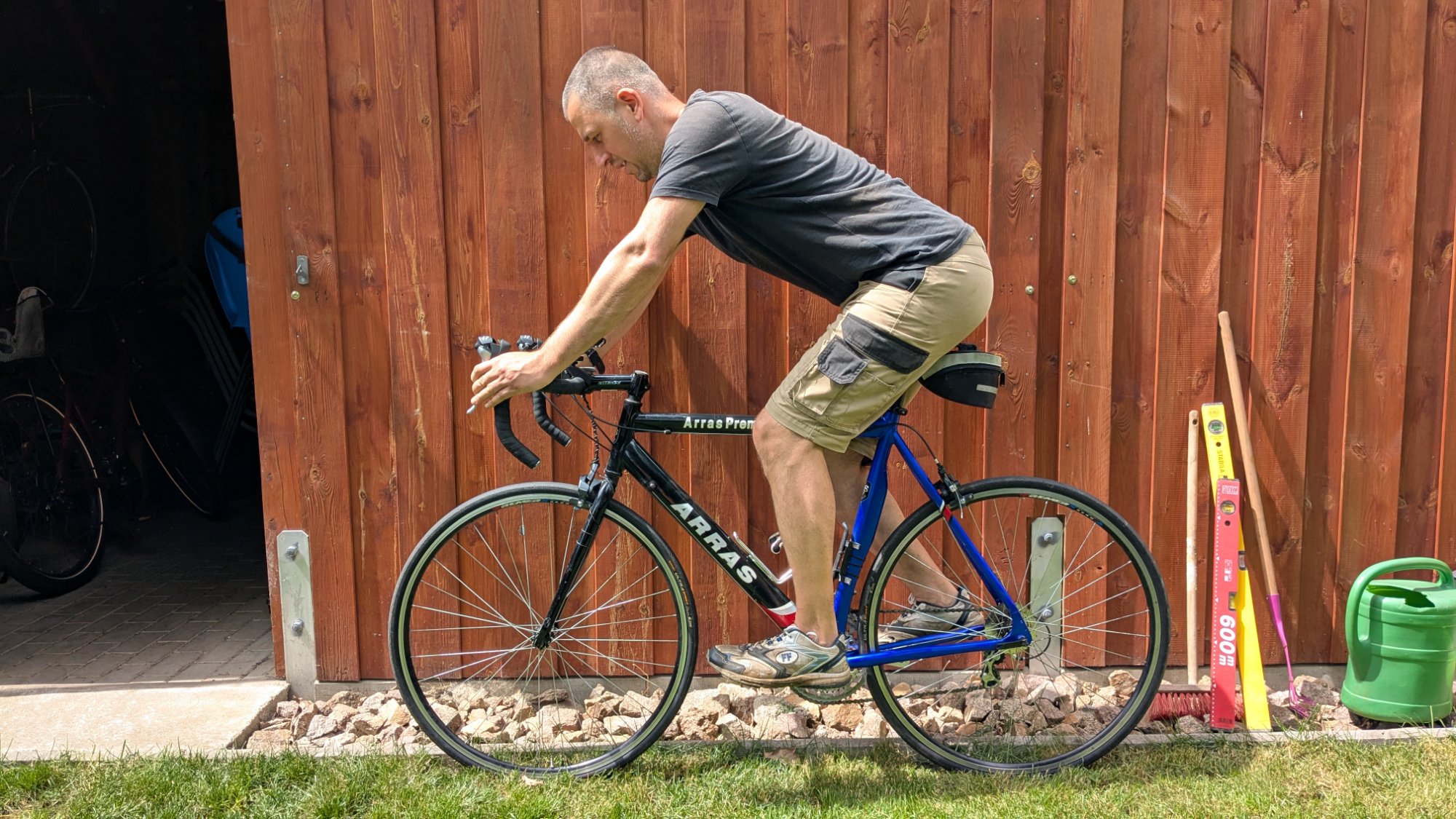 Ich hatte am Wochenende zwei (unqualifizierte) Fotos von meiner Fahrposition gemacht. Ein Mal in den Hoods und einmal am Oberlenker. Entschuldigt mein Outfit, aber ein Bild sagt wohl mehr. Allerdings nicht von meinem rechten Arm/Hand ablenken lassen, welche ich zum Abstützen gebraucht habe.