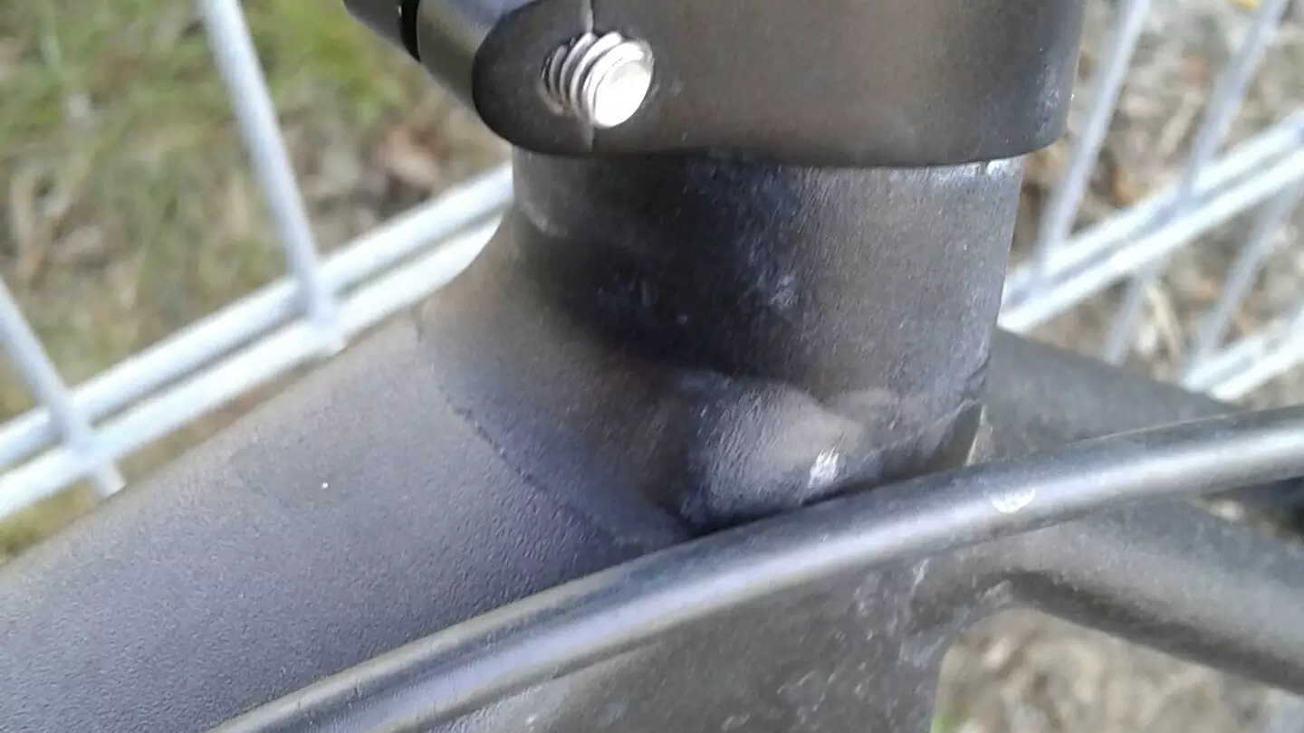 Ende 2014 ein Modell 2015 gekauft, in Schwarz. Im Juni 2017 fand ich, nachdem der Rahmen schon wochenlang geknackt hatte, den Grund: Einen Riss am Oberrohr, knapp vor dem Sitzrohr: