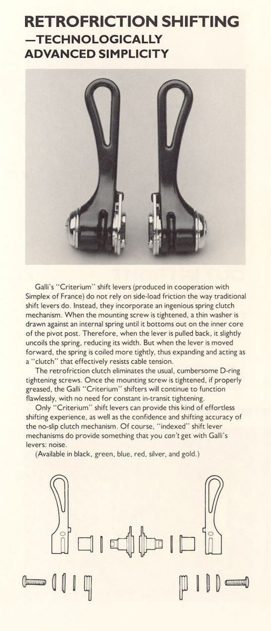 Die ungelabelten Simplex retrofriction Schalthebel waren auch eine Komponente der Galli KL Serie. (Die KL Serie finde ich auch einfach richtig edel und sehr ästethisch, perfekt passend zu den