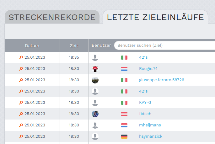Ich war gestern auf der Seite der Strecke, um mir die Rennergebnisse anzuschauen. "Letzte Zieleinläufe" zeigte überall "18.30", sprich wann die jenigen die Strecke gefahren sind aber nicht die Dauert der Fahrt. Was für ein Mumpitz. :nonono: Das muss doch irgendwem von den Entwicklern dort auffallen? Völlig unverständlich.